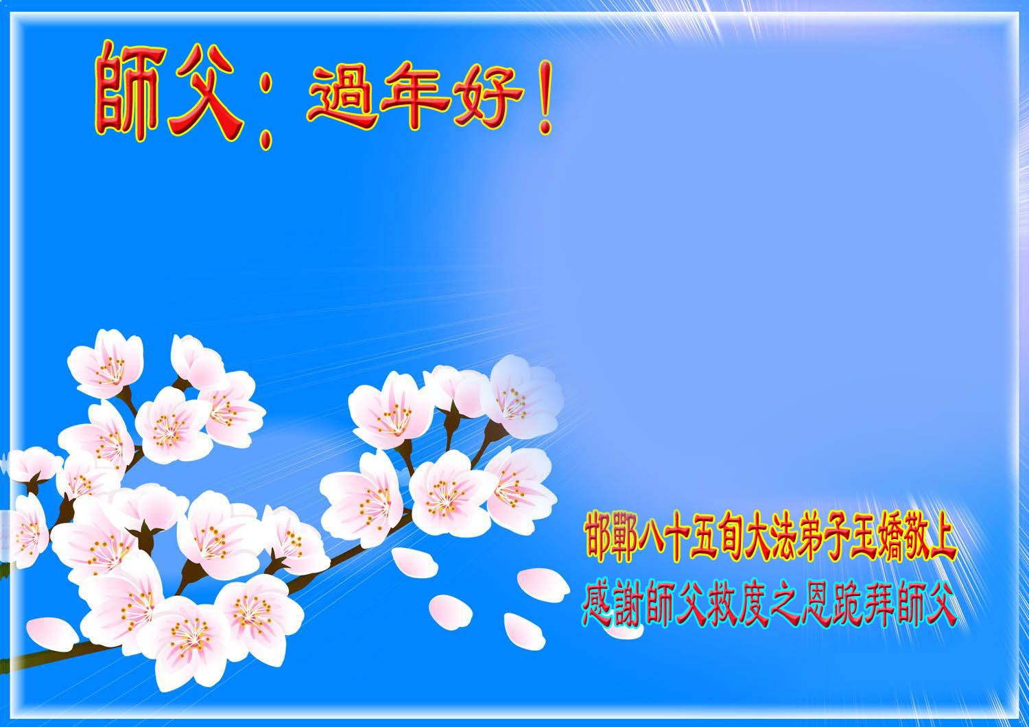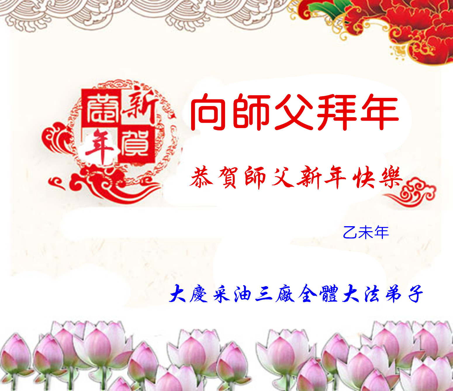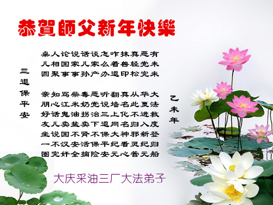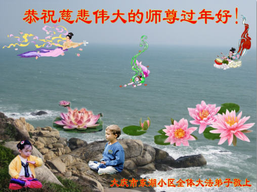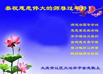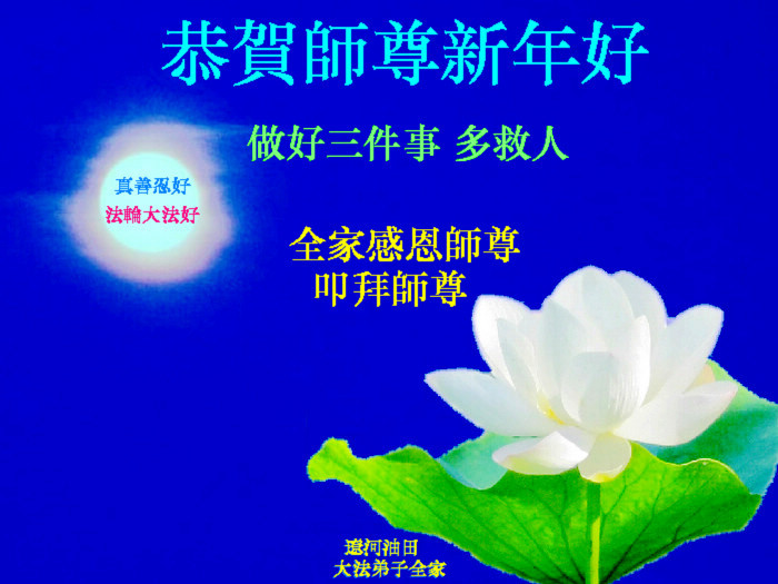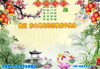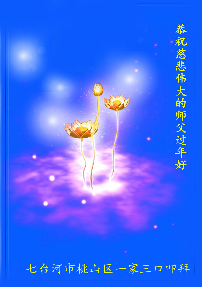 山东东营胜利油田大法弟子代表家人同修恭祝伟大的师尊过年好! 一定做好三件事,跟师父回家!