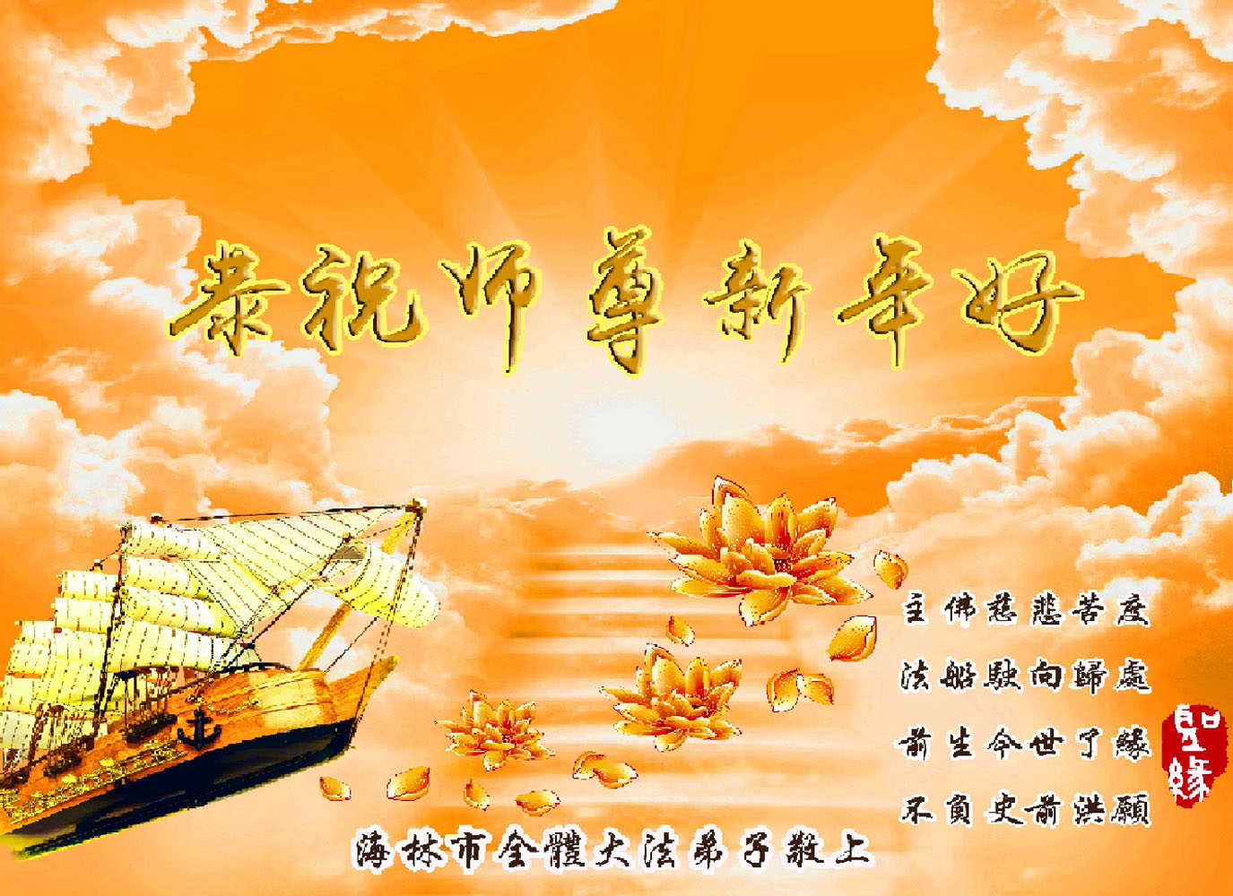 恭祝慈悲伟大师尊新年快乐!绝不辜负师尊希望。