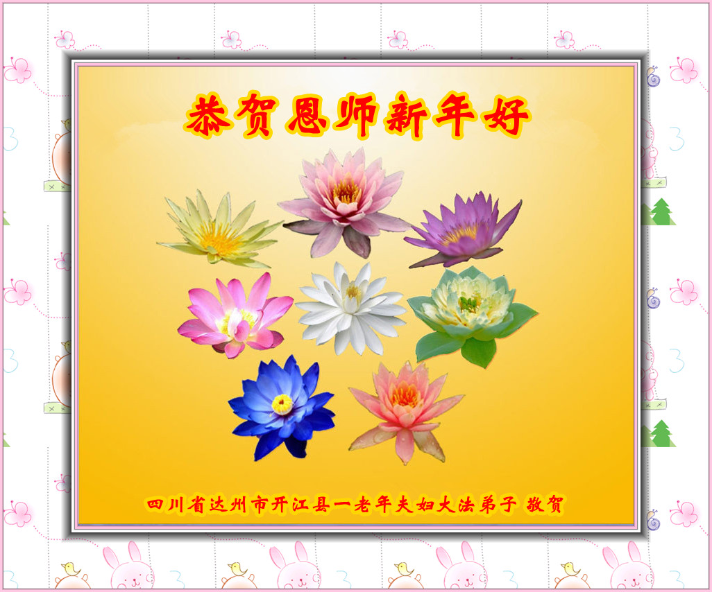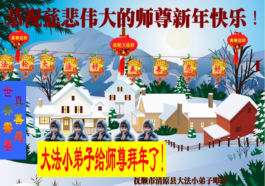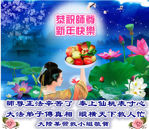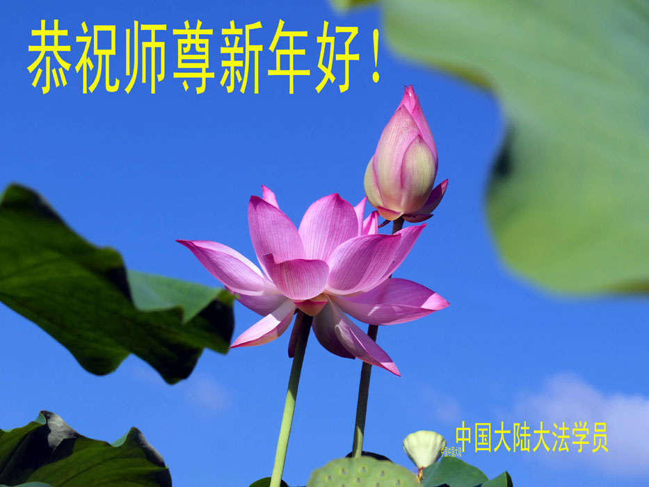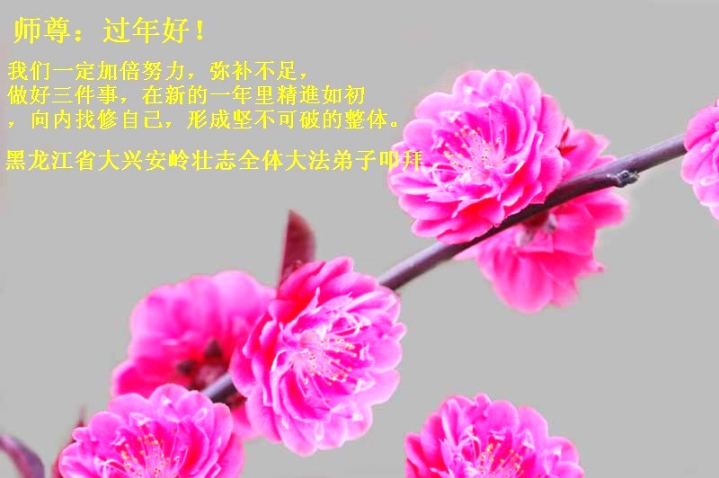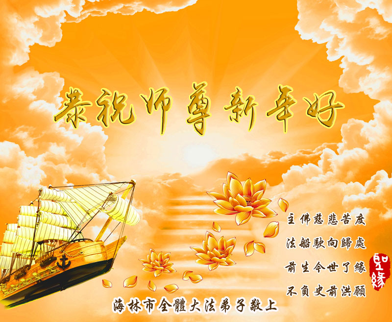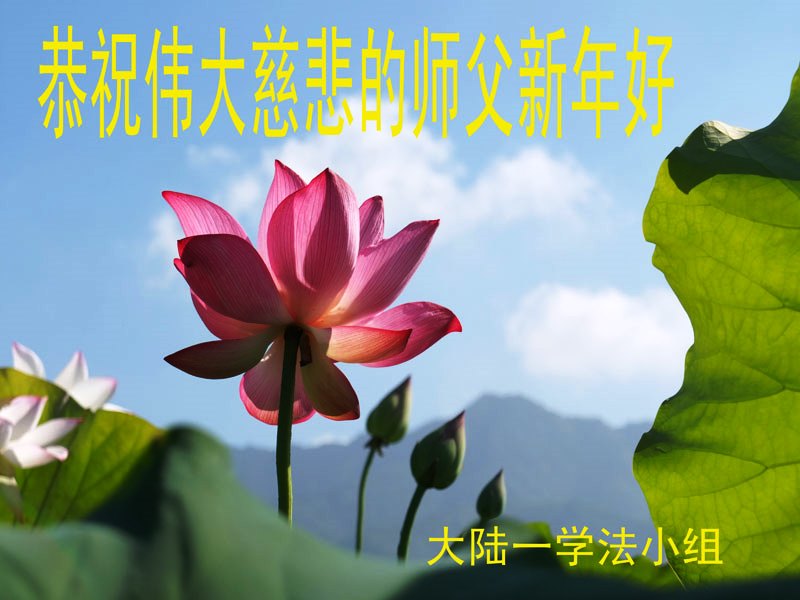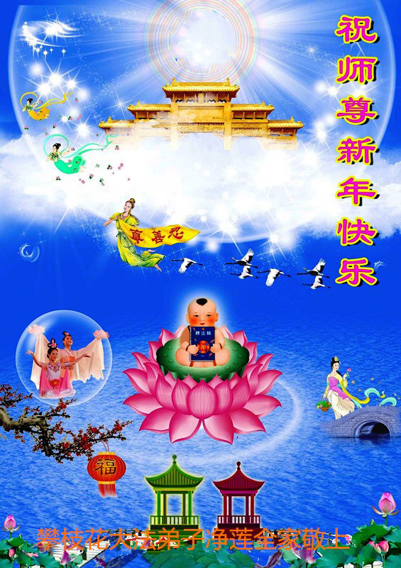 一元复始,万象更新。在新的一年里,弟子们一定谨记师尊教诲,向内找、向内修,决不辜负师尊的慈悲救度。努力做好三件事,跟上正法進程,多救人,回报师恩。盼与师尊早日团聚。给师尊拜年!