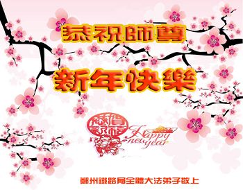 值此二零一五年度新年佳节即将到来之际,郑州铁路局全体大法弟子恭祝至尊至上慈悲伟大的师尊新年快乐!寰宇已经走到了最后的最后,师尊无量慈悲,为宇宙众生的得救和大法弟子的得度承受巨大,对师尊的感恩我们无法用人类的语言表达,唯有紧跟师尊走好最后的路,尽全力做好三件事,救度更多众生,以回报师尊的浩荡佛恩!