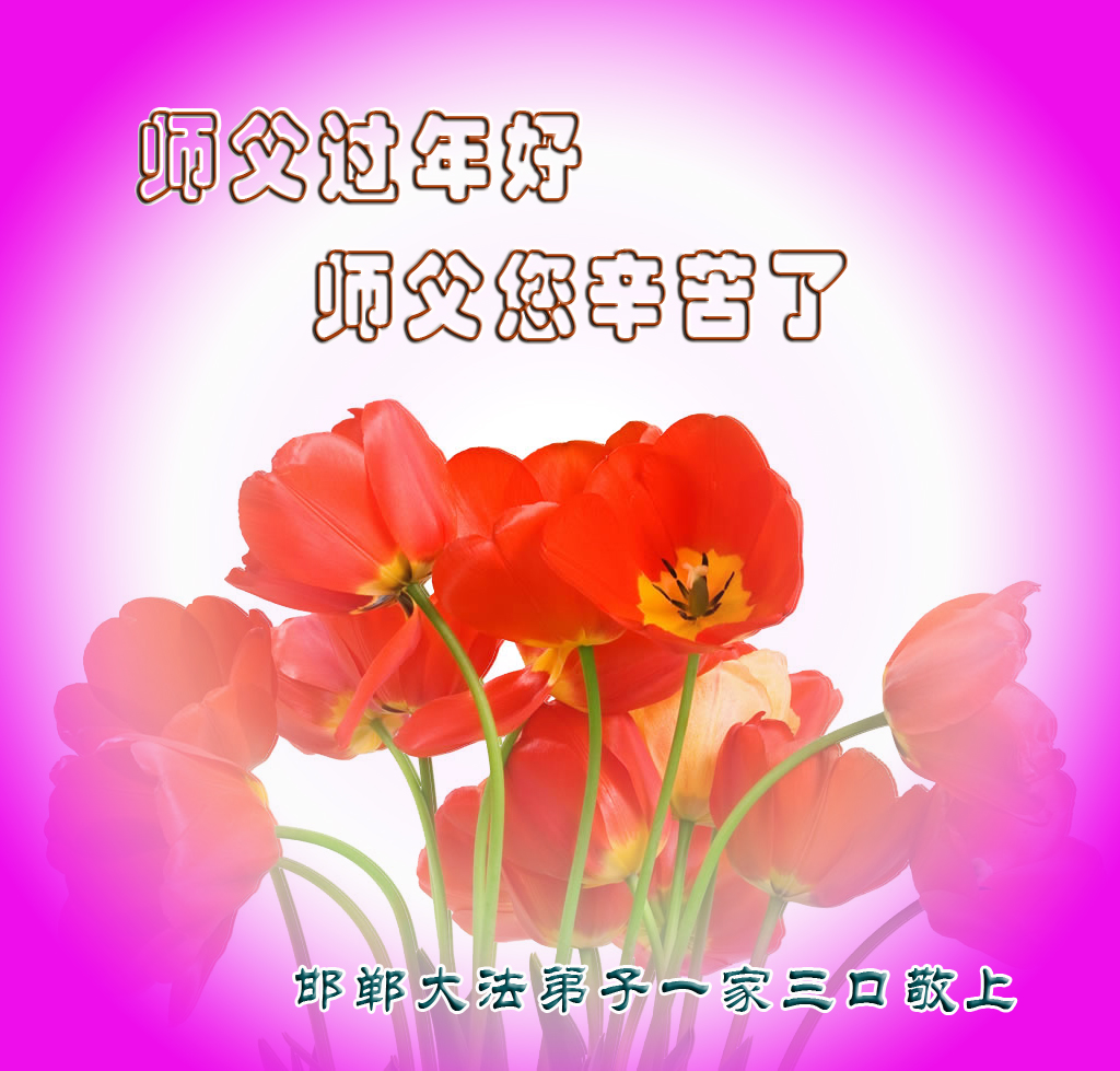 我们全家人修炼近二十年了,在七千多个日日夜夜里,慈悲的师尊时时刻刻在我们身边,看护着我们。在这辞旧迎新的过年前夕,全家人发自内心的向慈悲的师尊说一声:师父,您辛苦了!我们一定遵照您的教导做好三件事,紧跟师尊,坚修到底!
