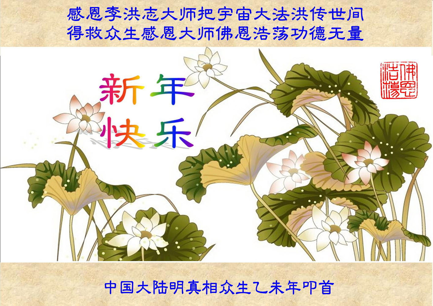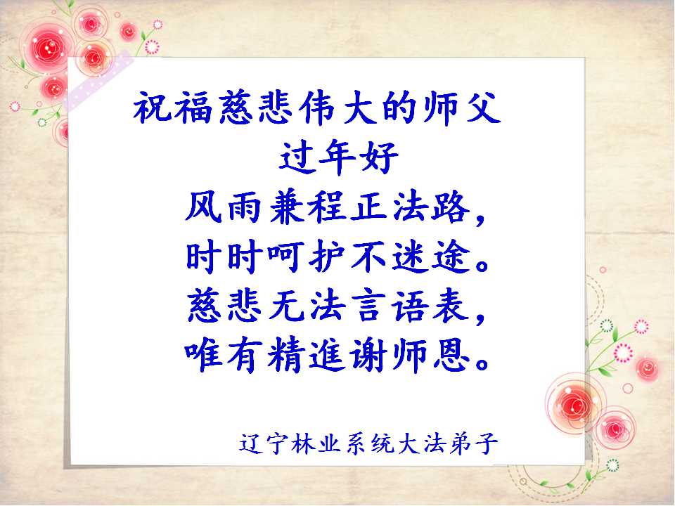 “法轮大法好!”“真善忍好!”我要做个“法正人间时的大法弟子”。恭祝李大师新年快乐!