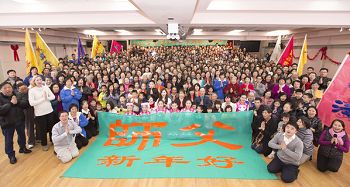 在中国新年来临之际,2月14日数百名法轮功学员参加了在纽约法拉盛举办的迎新年联欢活动,并恭祝法轮功创始人李洪志师父新年好。