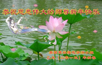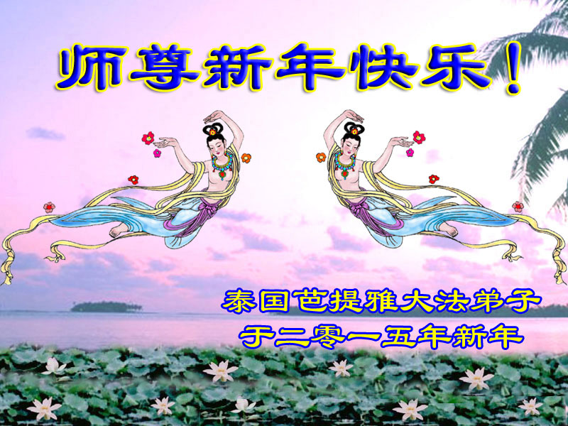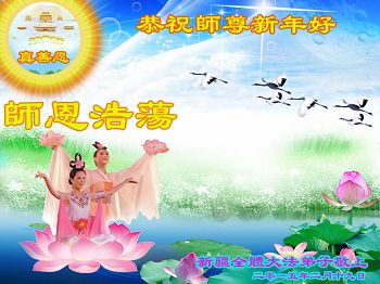 请慈悲伟大的师尊放心:在新的一年里,大法弟子一定多学法,走好、走正最后的路,修好自己,揭露迫害、扎扎实实的做好三件事,多救人,完成使命,兑现誓约,圆满回归。盼神韵到大陆演出,普天同庆,迎请师尊回国。