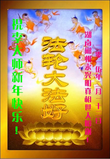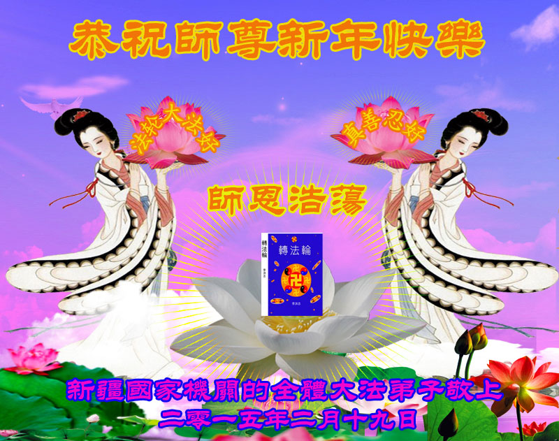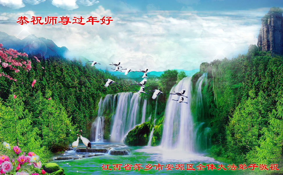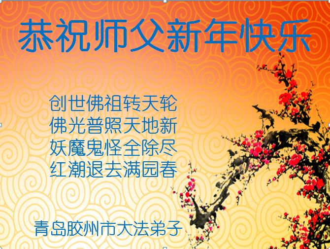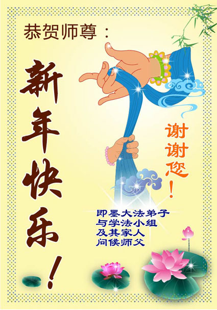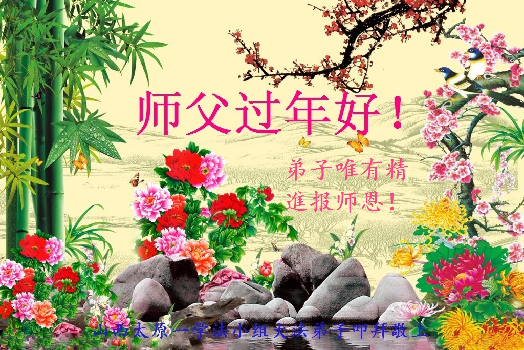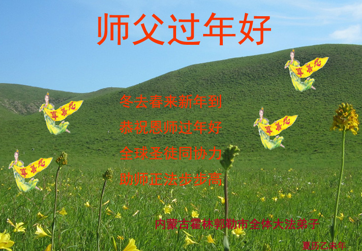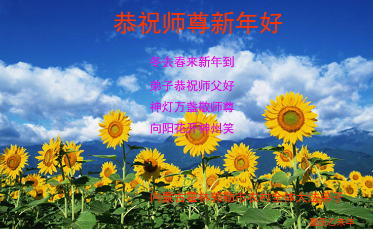 乙未年到来,中国大陆国税系统退休大法弟子向慈悲伟大的李洪志师父拜年! 恭祝师父新年快乐!