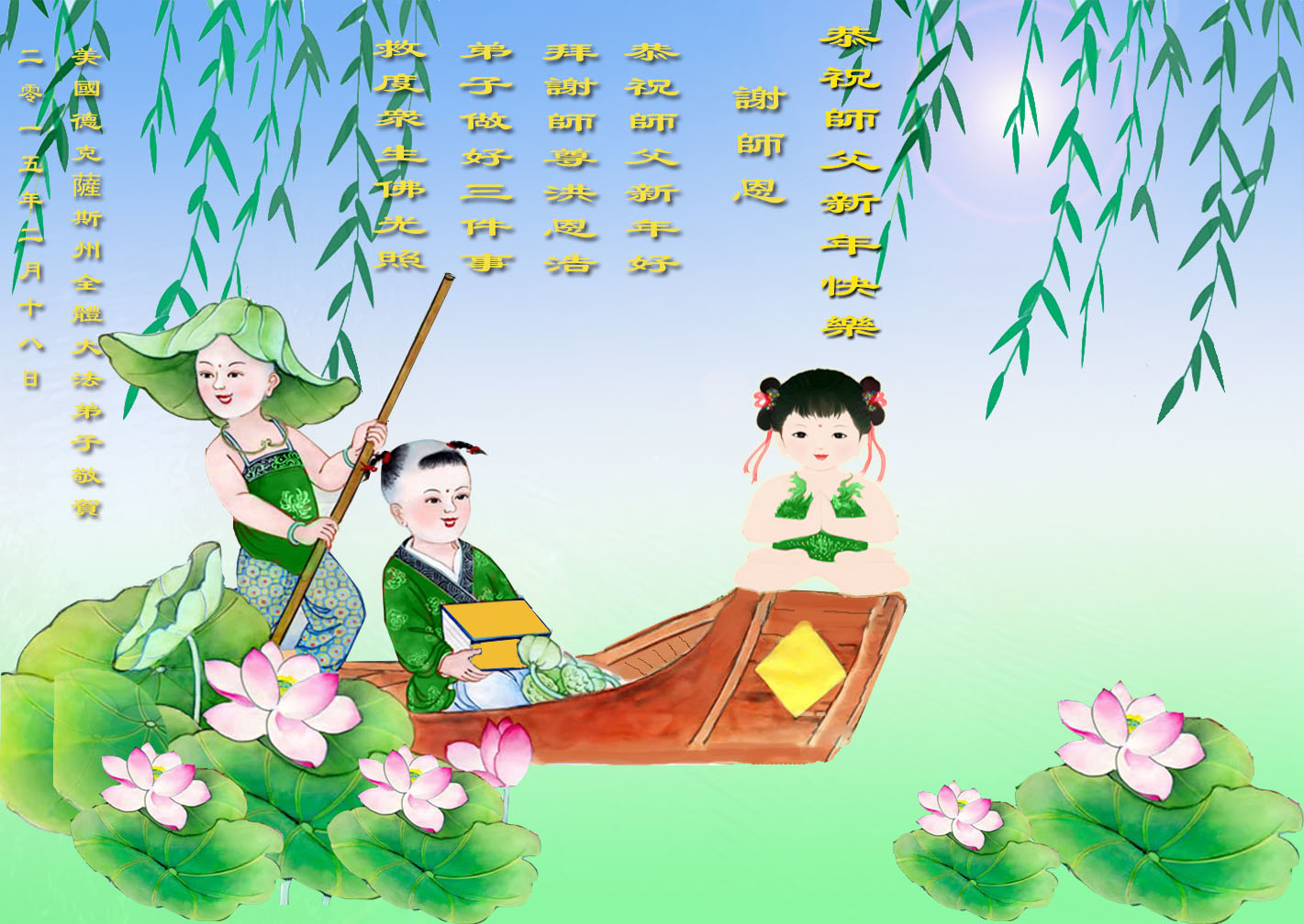 <英文版: http://en.minghui.org/html/articles/2015/2/18/148609.html>大陆军队大法弟子恭祝师尊过年好