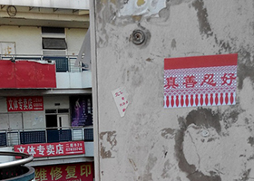 在2015羊年新年降临之际,在北京某商业街上,人们惊喜地发现,充满节日喜气的中华传统剪纸,携带着“真善忍”“法轮大法”的祥和之气,悄然出现在商家店铺的门窗、墙体和栏杆上,向佳节中的人们传达着祝福。