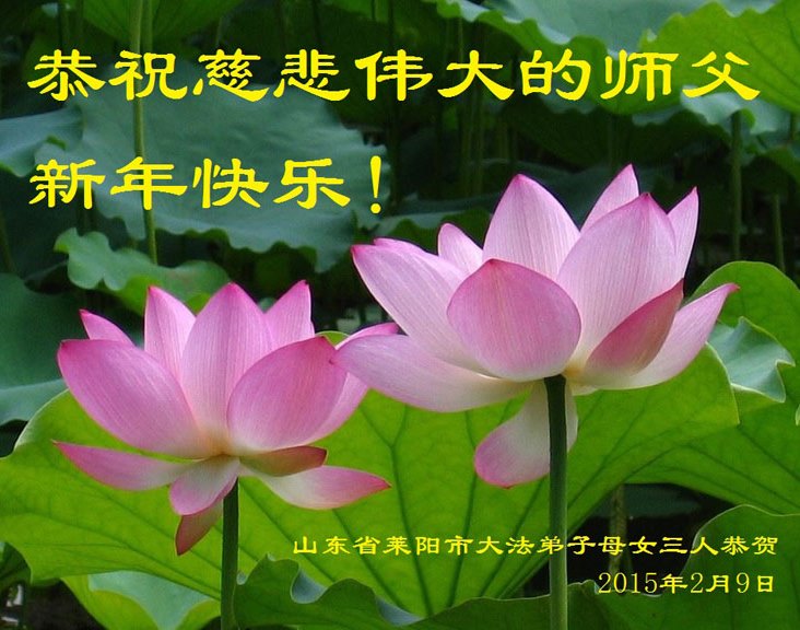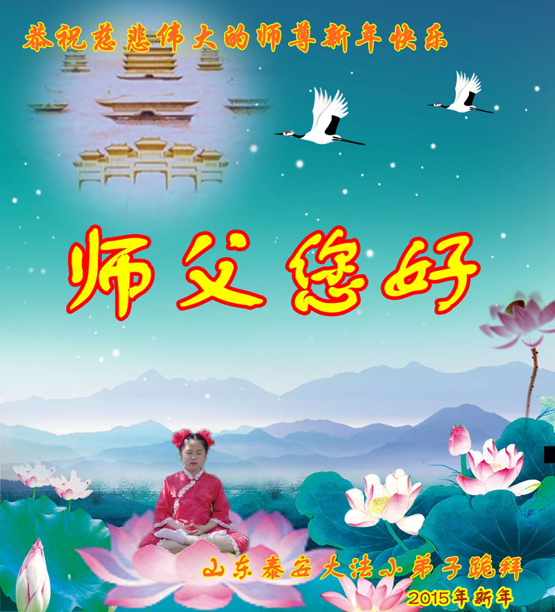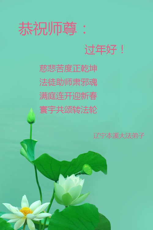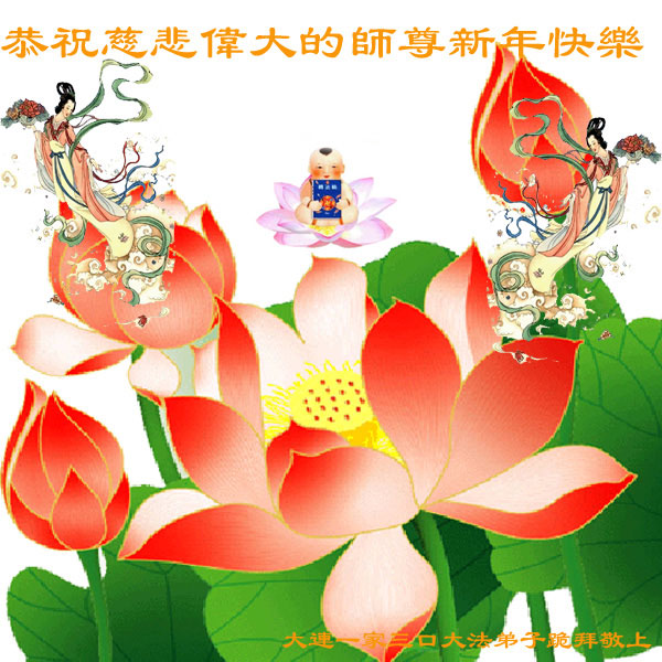 我们妈妈是炼法轮功的,我们也一直在李大师的慈悲呵护下,几次开车在路途中,都能遇难呈祥。在这辞旧迎新的大年中,我们跪拜恩师的慈悲救度,感恩李大师的护佑!恭祝李大师新年快乐!
