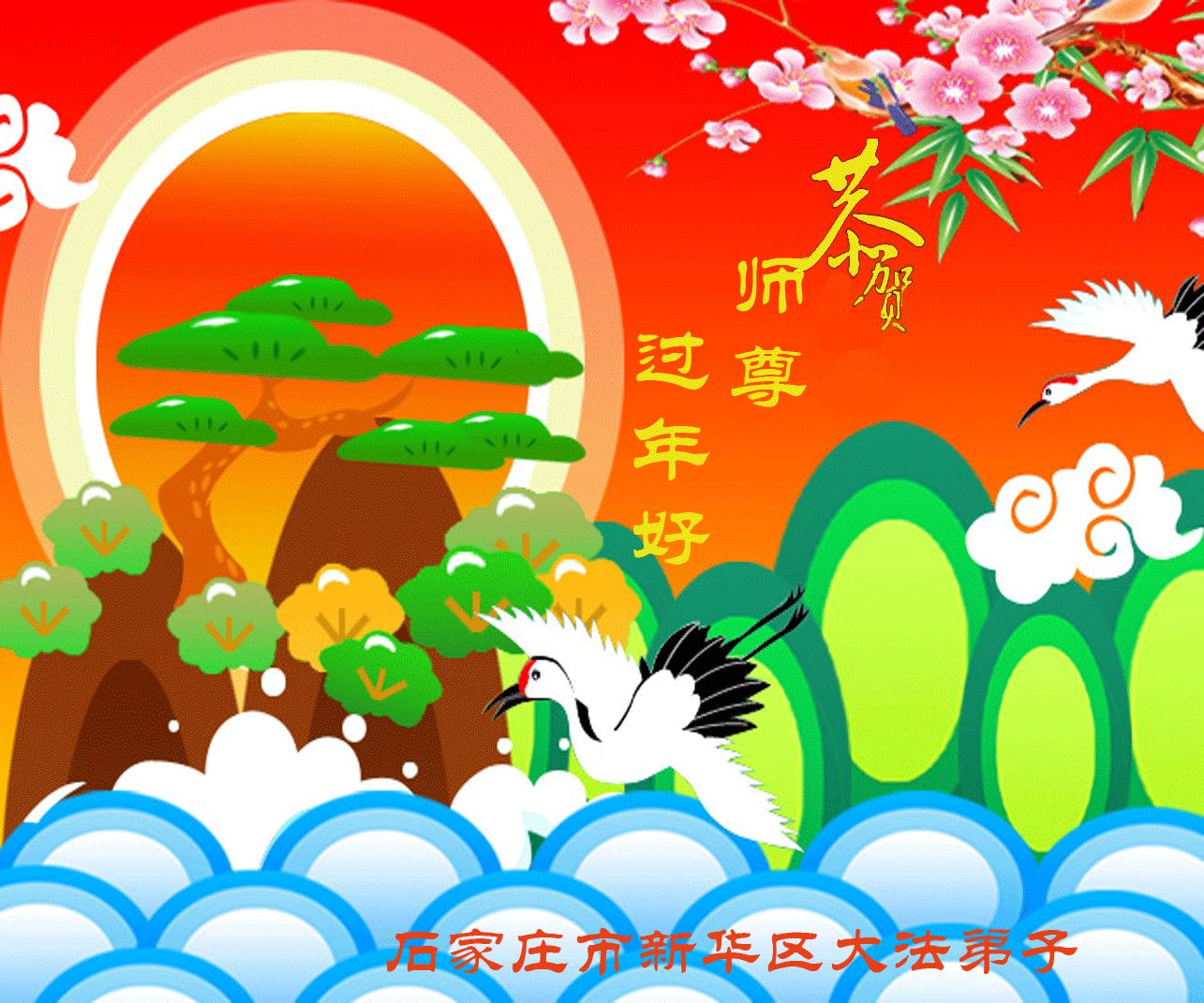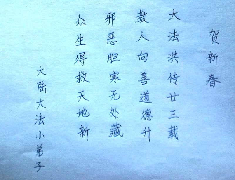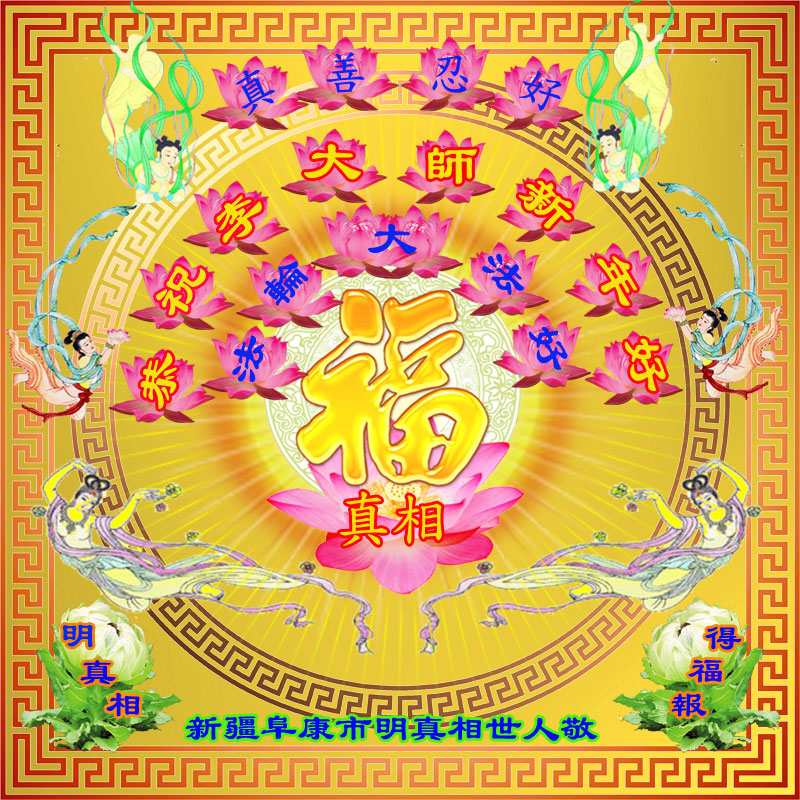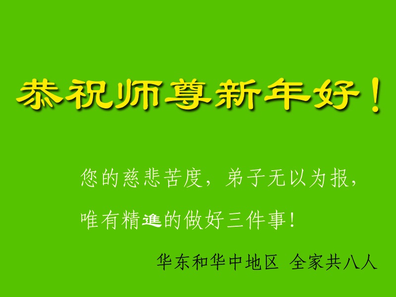 祝李大师过年好,拥护法轮大法好,支持法轮大法好,我知道真善忍好,我做好良民。