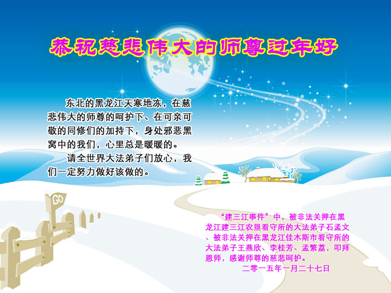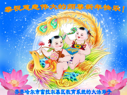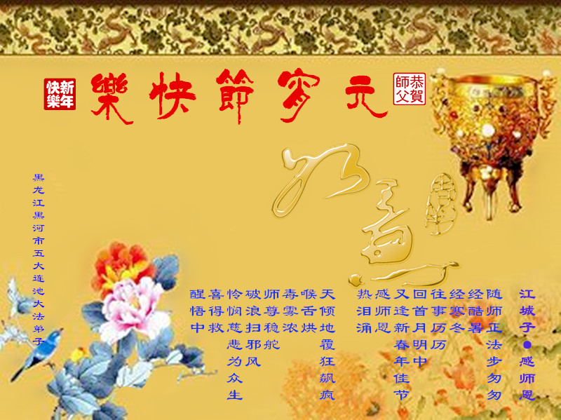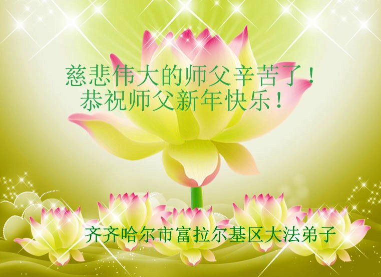 我们是佳木斯大法弟子家属,新年到了,我们在这里恭祝李大师过年好!感谢李大师的慈悲救度!