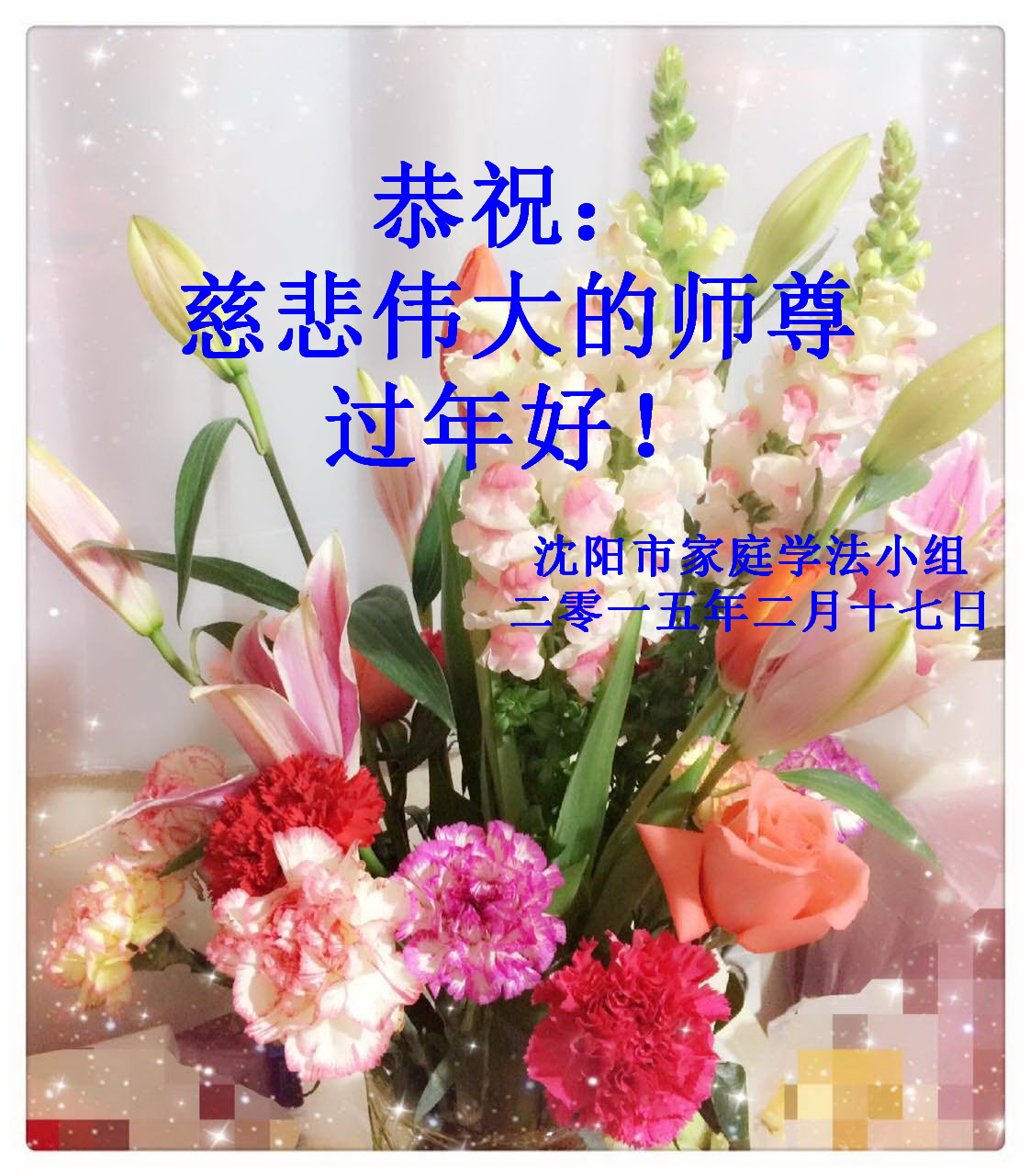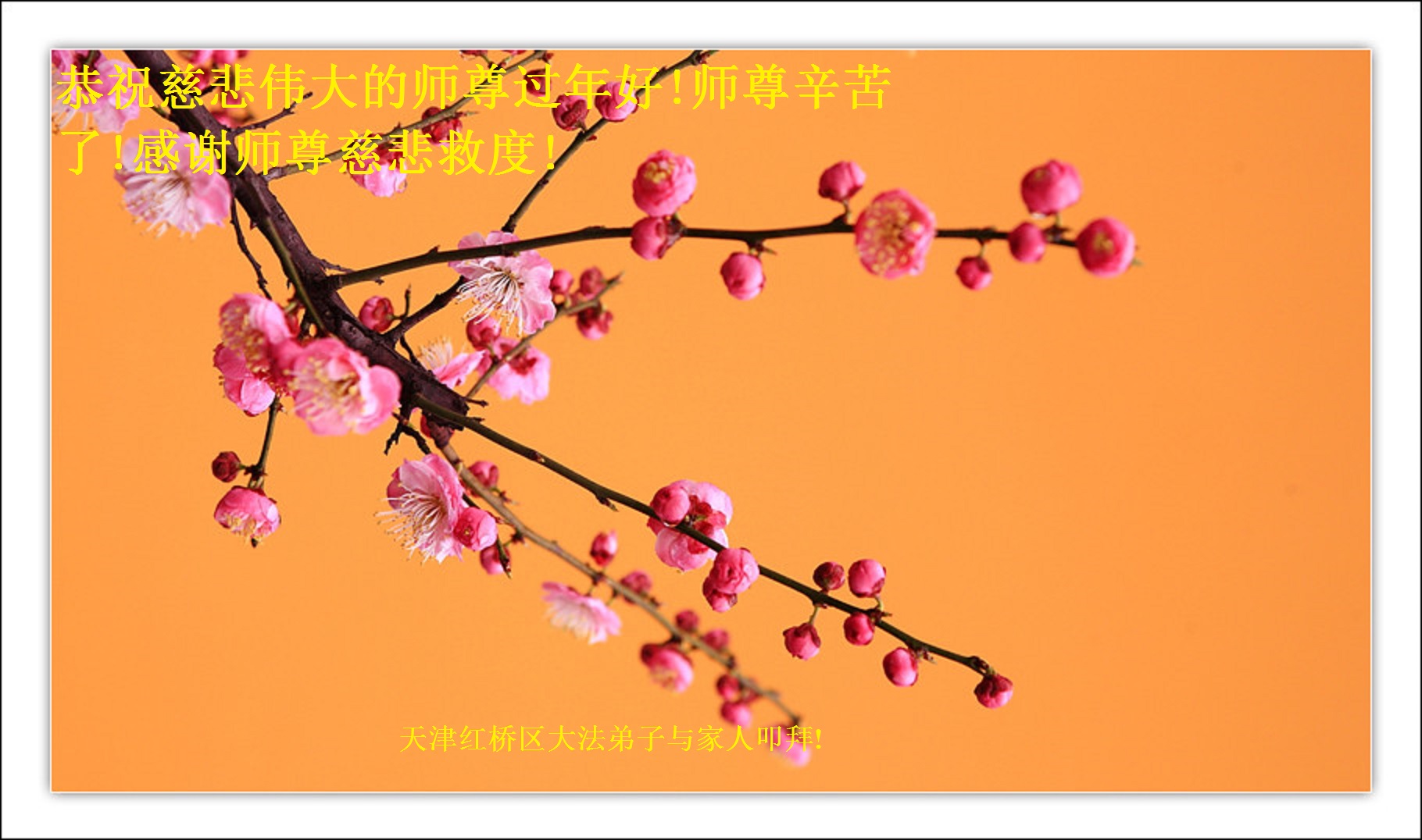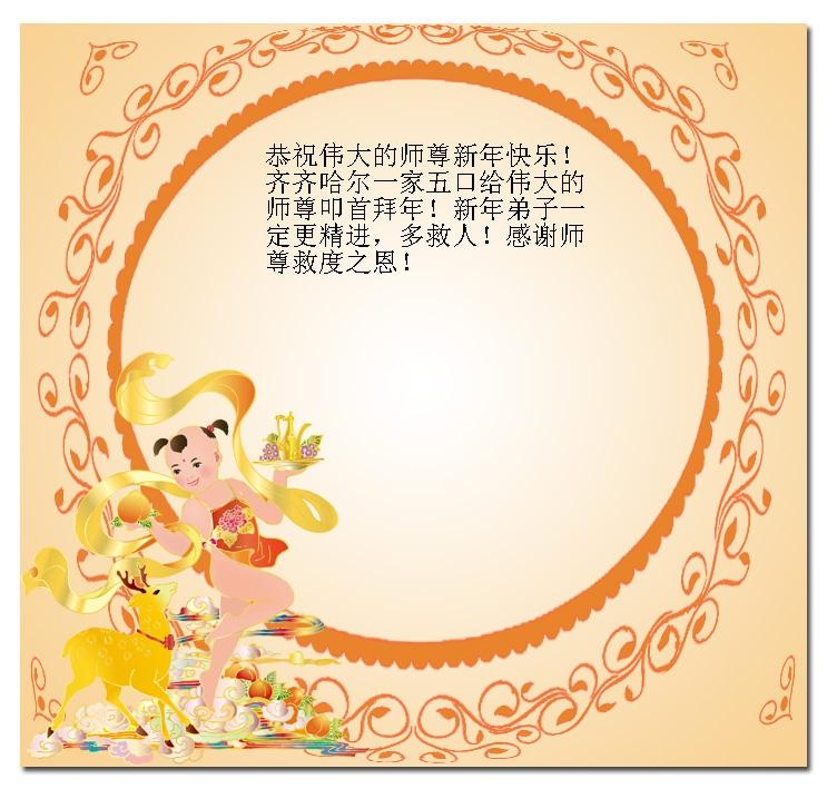 在此新年之际,我们全家老小五口人给您拜年,感谢李大师的慈悲救度!恭祝李大师过年好!祝您全家过年好!
