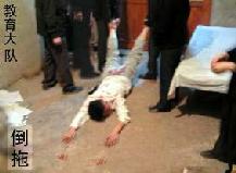 中共的拖刑就是由恶人拽着法轮功学员的手或脚,也可能是拽着手铐、脚镣、衣物之类的东西在地上拖。这种酷刑对人的伤害非常大。