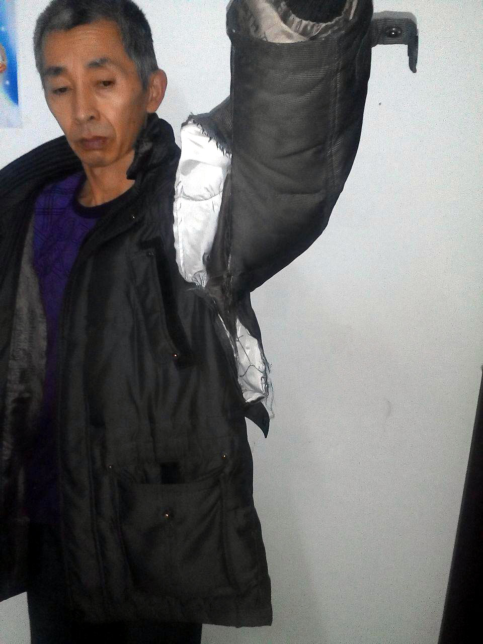石孟昌抵制警察的暴力绑架,衣服被撕坏,膝盖被扭伤