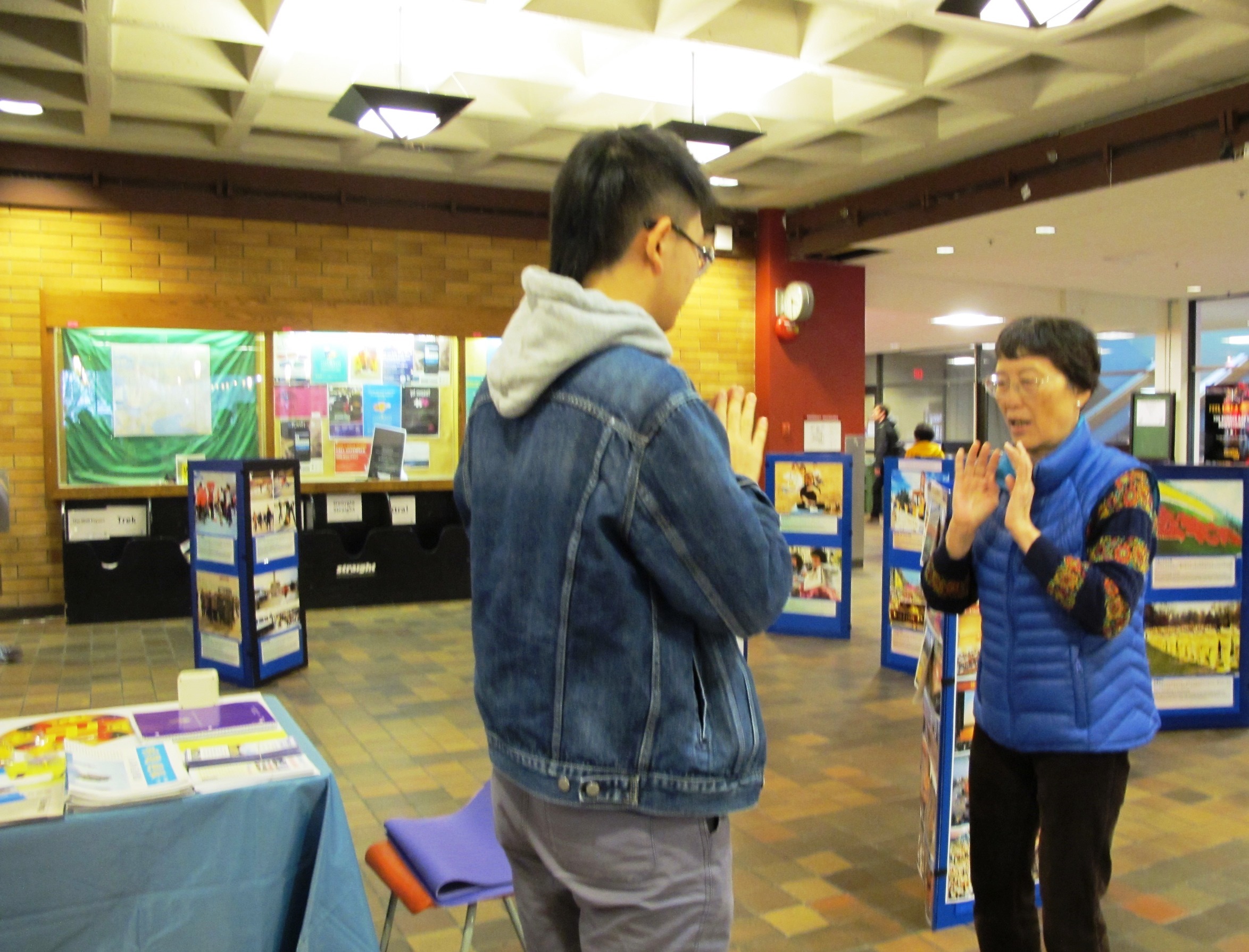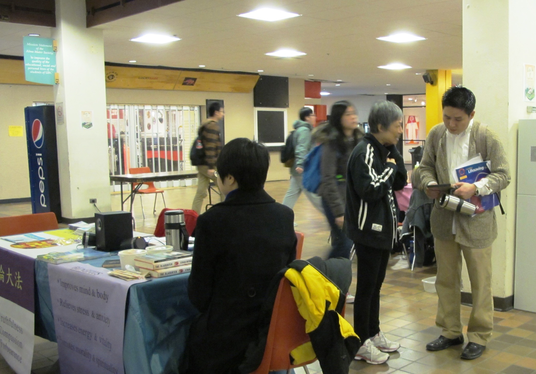 <英文版: http://en.minghui.org/html/articles/2015/3/6/149220.html>卑诗大学法轮功介绍 有缘人自由畅谈(图)