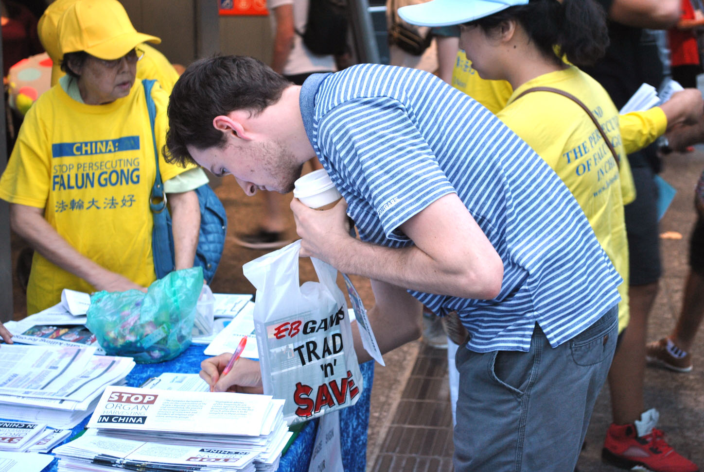 来自德国的女学生布艾其(Nadia Buach)二话不说过来签名,她生气的说:这年代还有政府做这种事,我两年前在德国就签过名,很显然中共还没停止。“太糟糕了,我真不明白为什么会发生这种事(活摘),我无言,太可怕了。”“(人们都该)签名,去了解(真相),不要认为不关你的事,只想自己简单的过生活。”