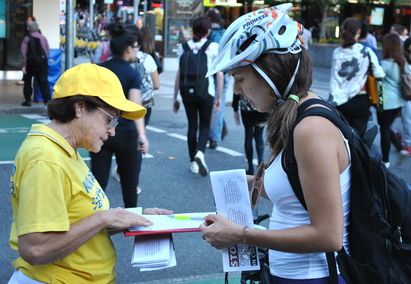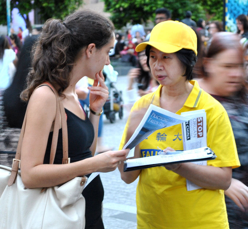 另一位接过传单的女士说:“(SBS播放的纪录片)令我感到很惊讶,很难过,我从没听过这个事(活摘),这引起了我的注意。”最令她难过的是:“人们被盗取器官,尤其是这样一个和平的团体。”