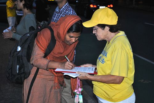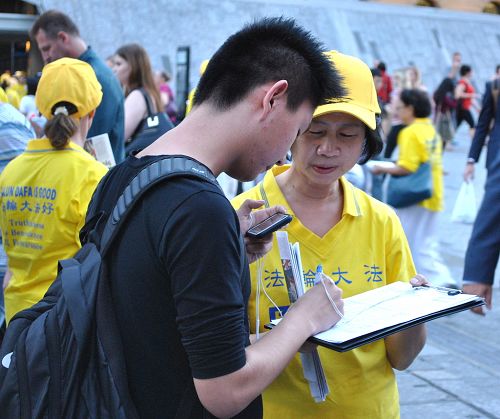 在布里斯本市中心签名支持法轮功学员的各族裔民众