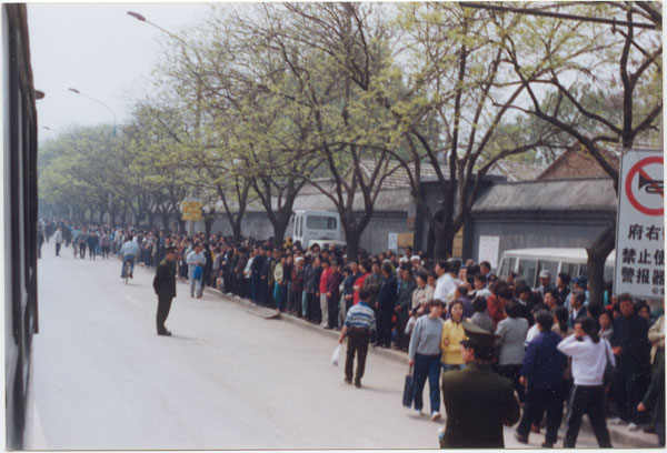 ![]() 图1:十六年前,一九九九年四月二十五日,中国大陆上万名法轮功学员自发到北京中南海国务院信访办上访,井然有序的高度自律,展现的风范震撼国际社会。 |