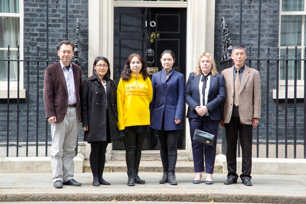 同时六位英国法轮功学员于当天下午,代表英国法轮功学员在英首相府唐宁街十号递交了请愿信,呼吁英国政府正视中共迫害法轮功罪行,与国际社会正义力量一起帮助停止迫害法轮功。