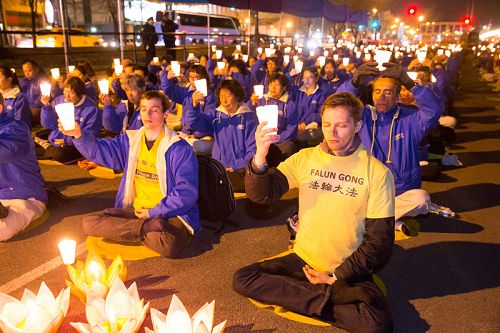 ![]() 图1-4:纽约法轮功学员在中领馆前烛光静坐,纪念“四•二五”十六周年。 |