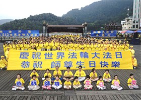 台湾中部法轮功学员于五月九日聚集在著名景点日月潭举办庆祝活动,庆祝第十六届“世界法轮大法日”。