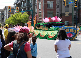 五月九日,加拿大温哥华法轮功学员参加了高贵林港市的五月节游行,受到市民热烈欢迎。