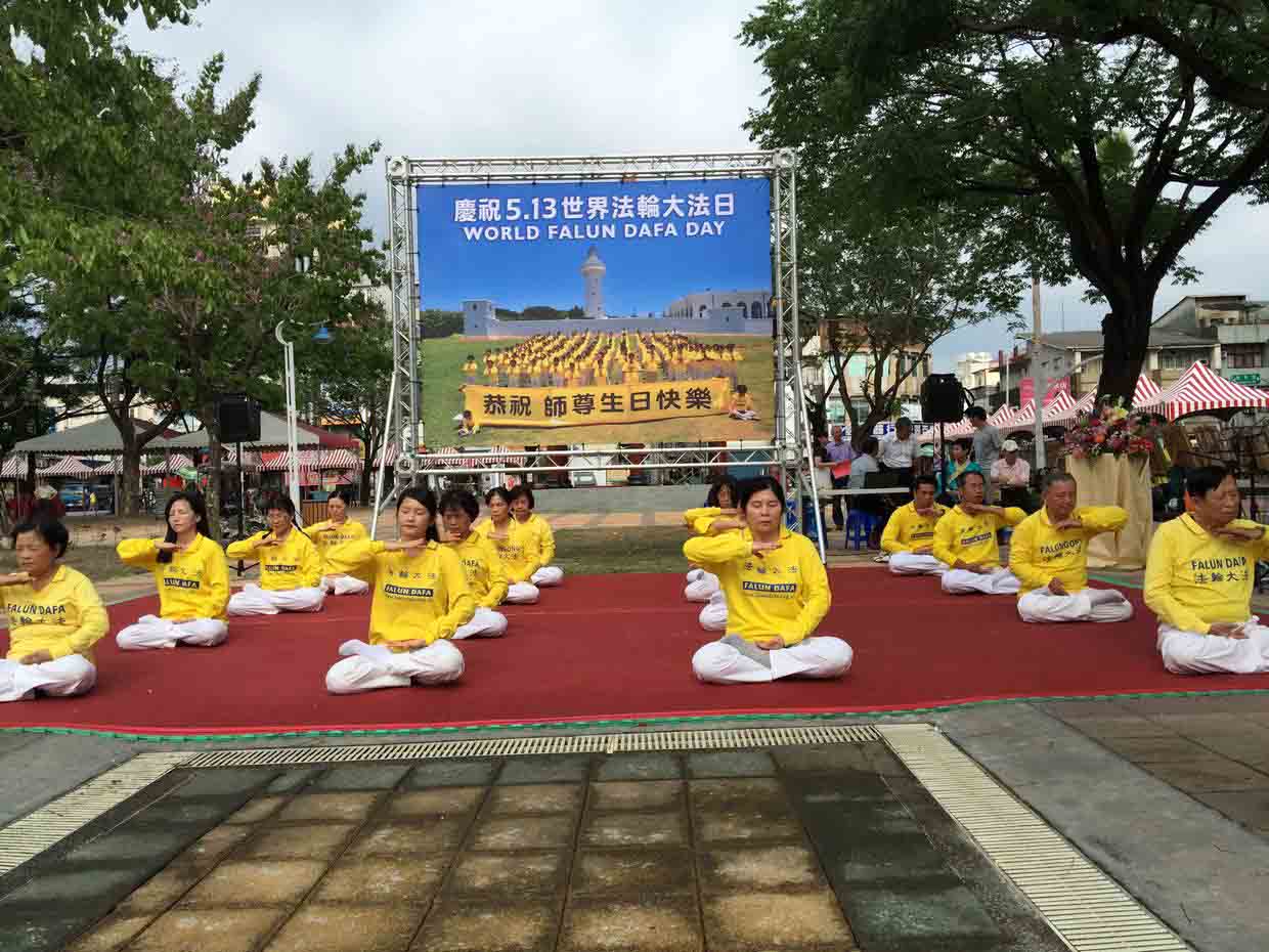 庆祝活动从下午三时开始,法轮功学员集体炼功的祥和场面展现着法轮大法的美好与殊胜。炼功场旁的“正法之路图片展”告诉民众法轮大法弘传世界一百多个国家与地区的盛况。五套功法的义务教功与摺纸莲花的教学,同样吸引民众们争相参与学习。