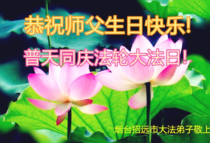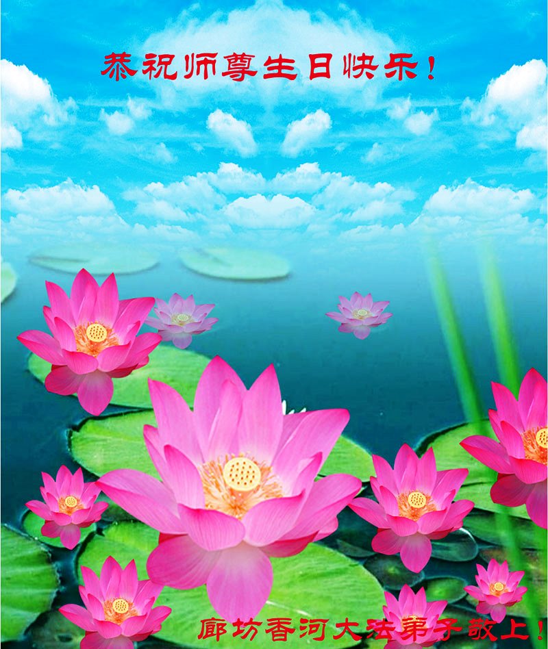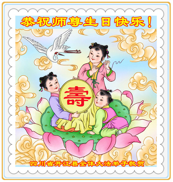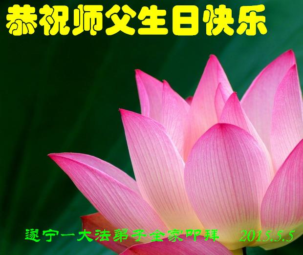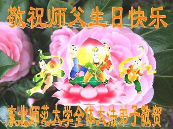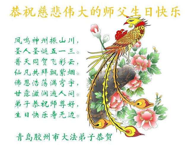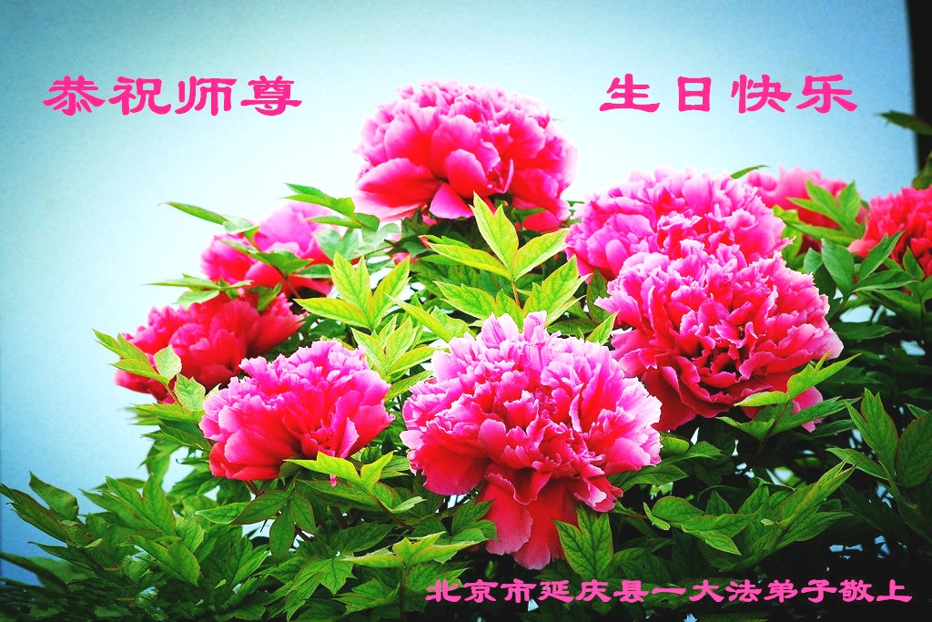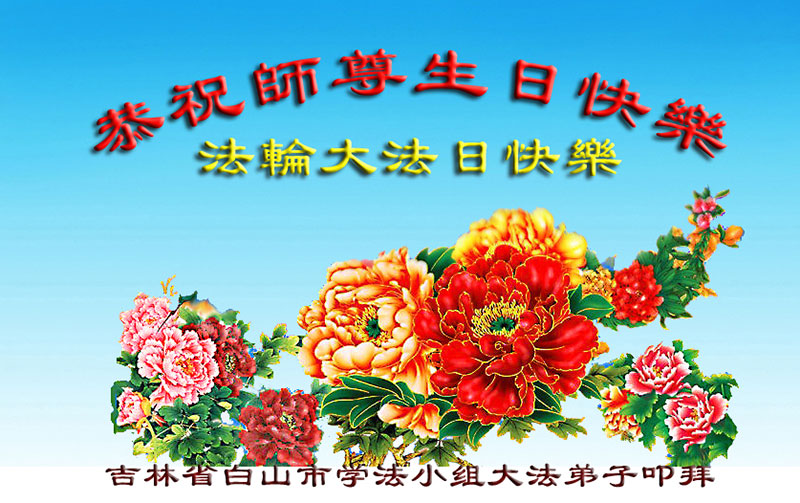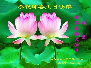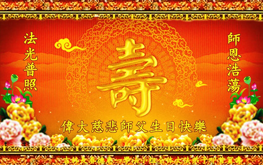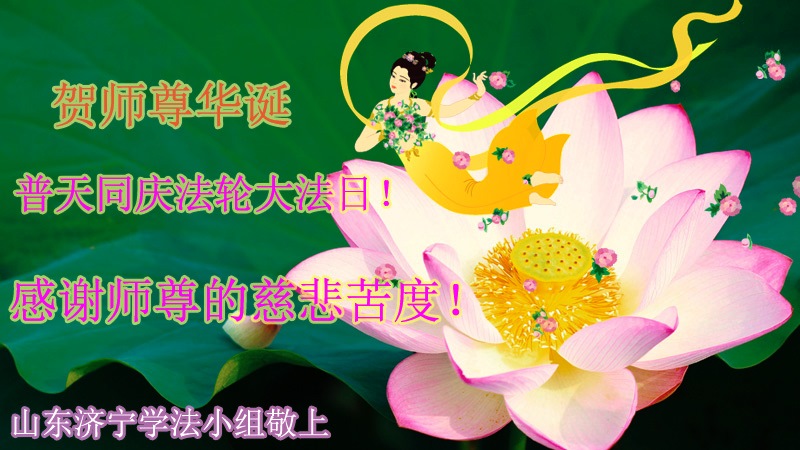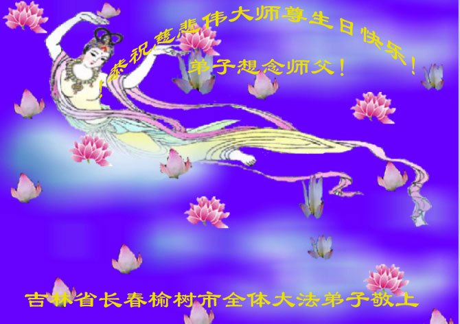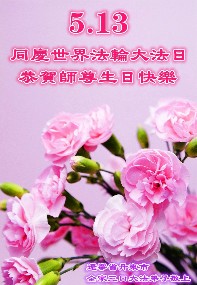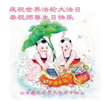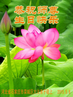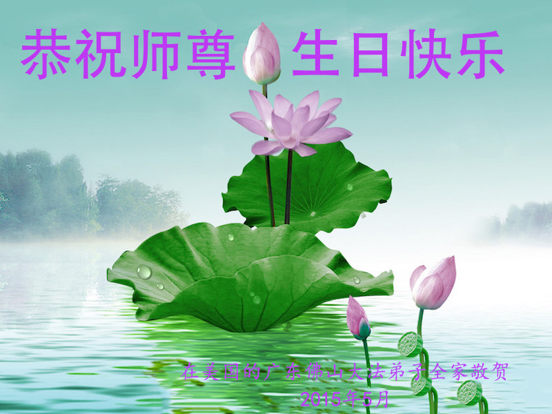 山东平原一大法弟子代表全家五口人,向慈悲伟大的师父问好!祝师父生日快乐!