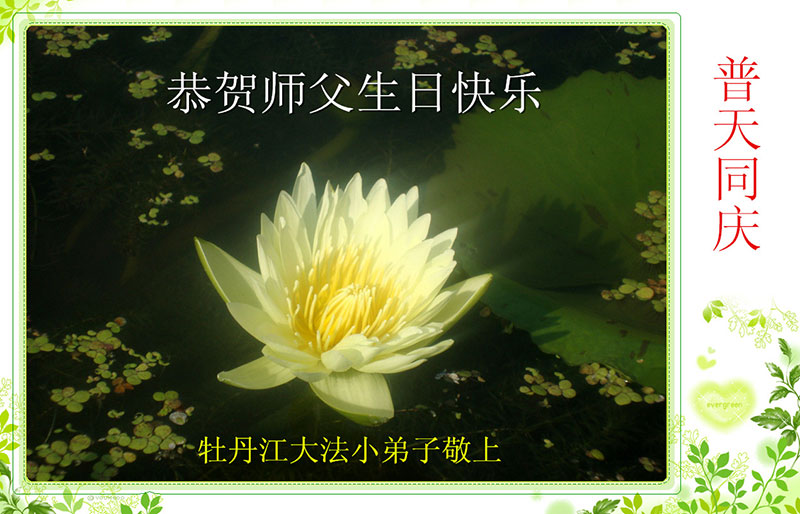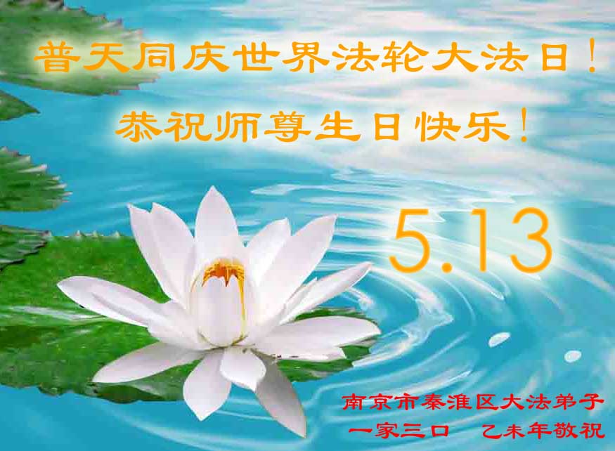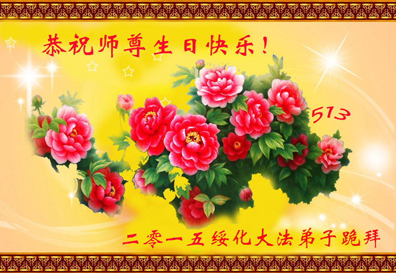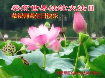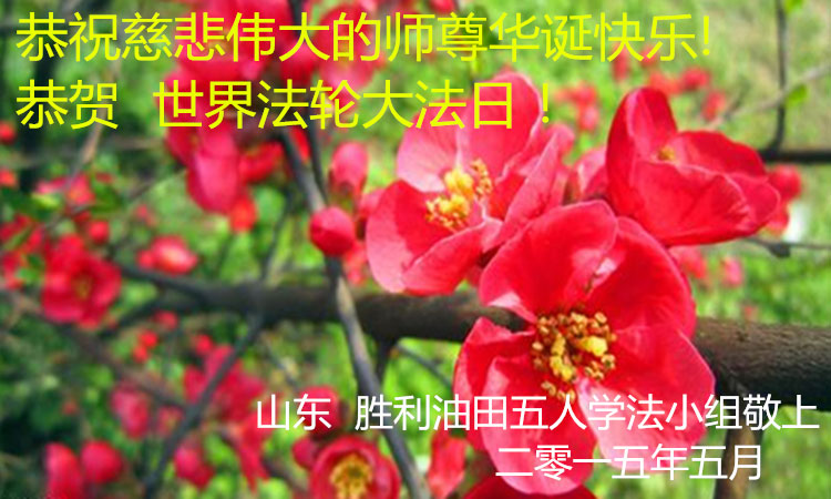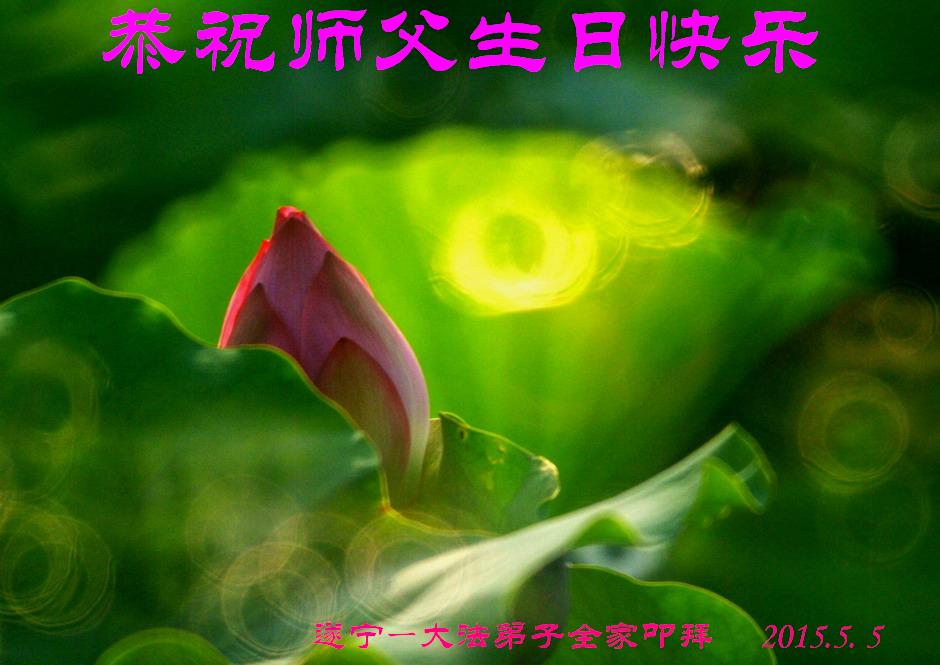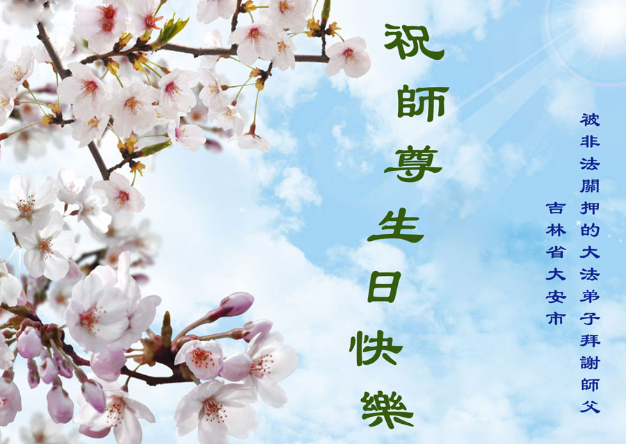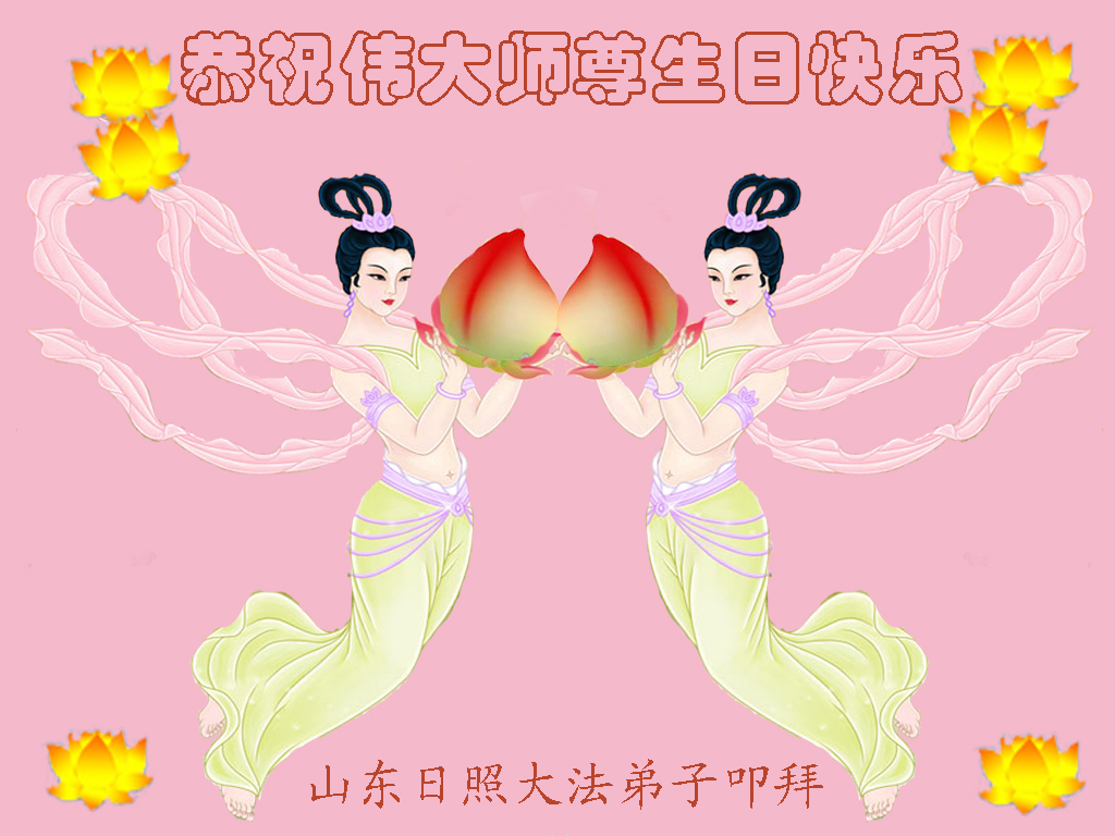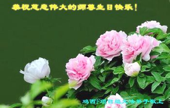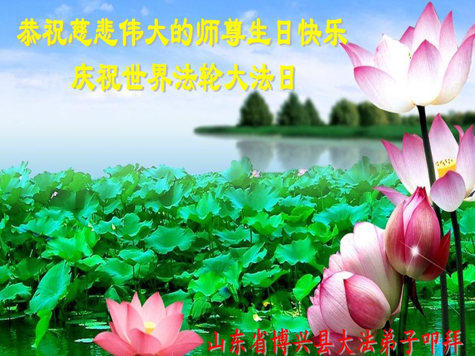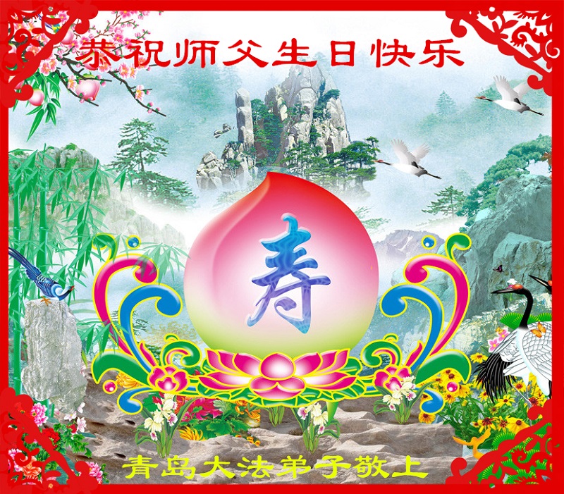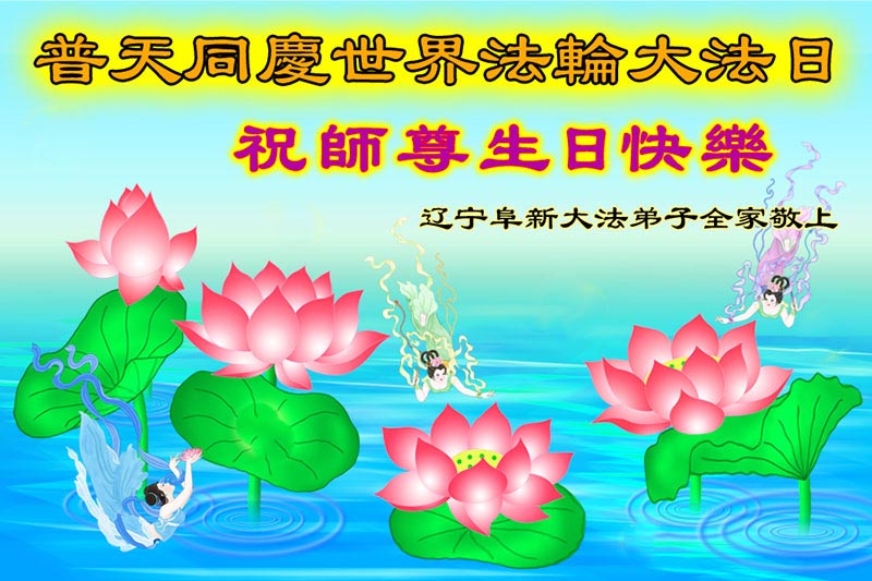 山东平原一大法弟子代表全家五口人,向慈悲伟大的师父问好!祝师父生日快乐!