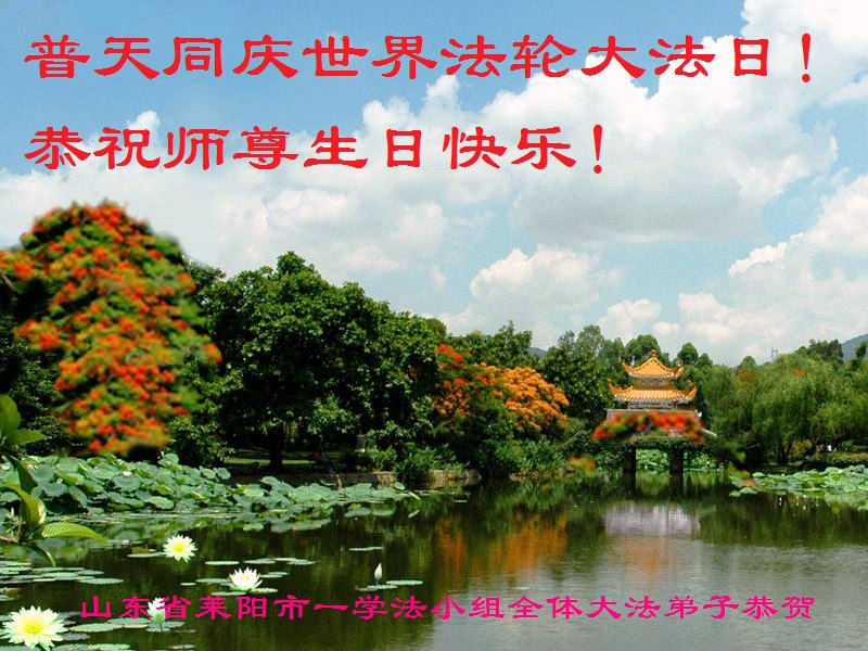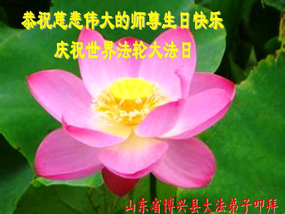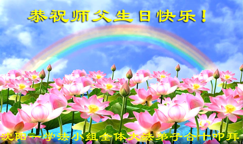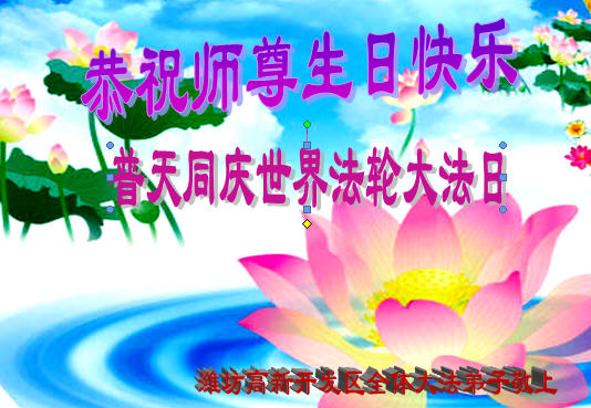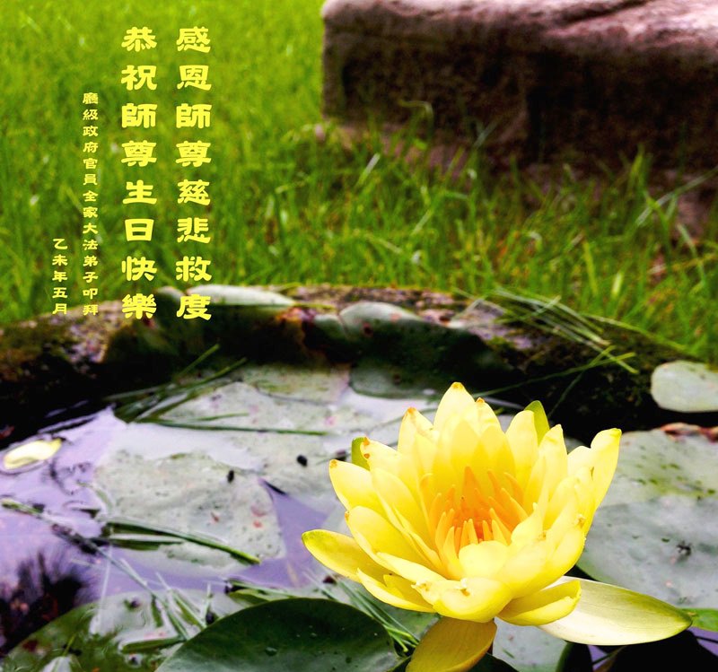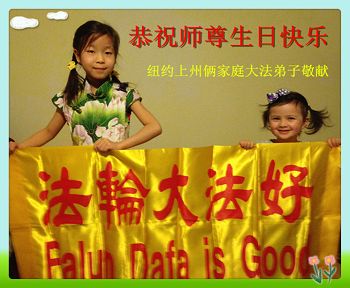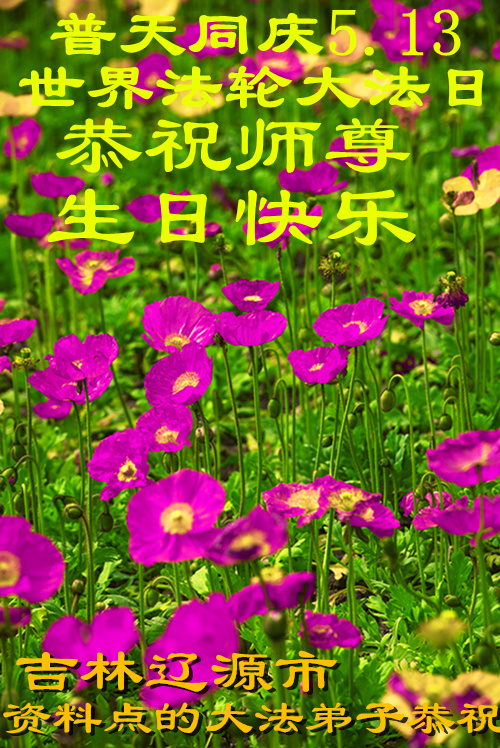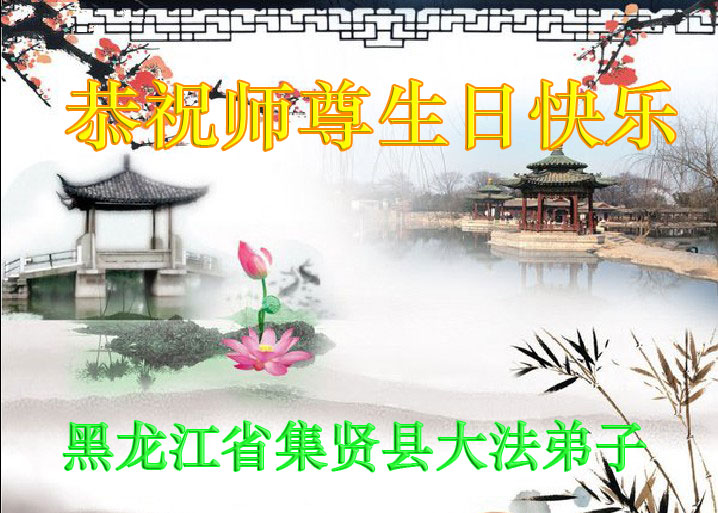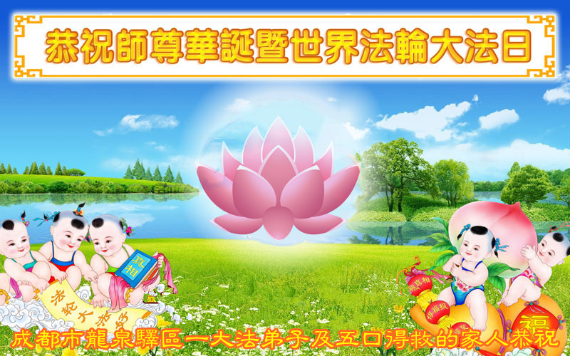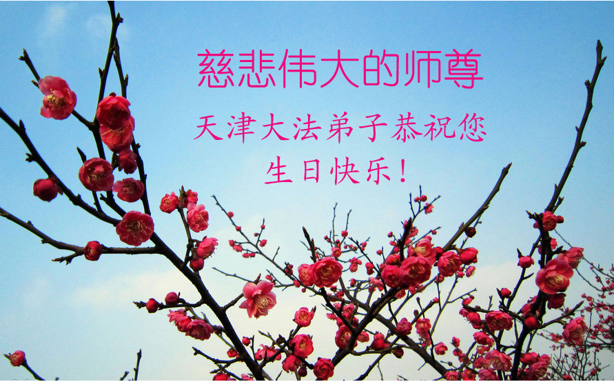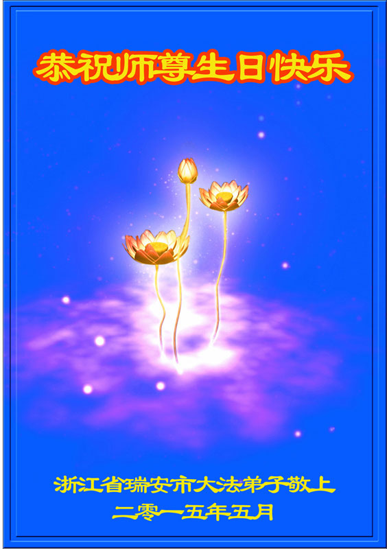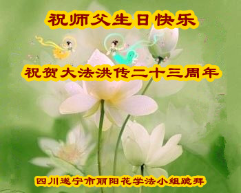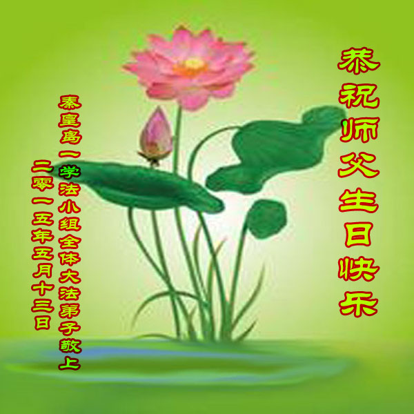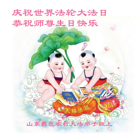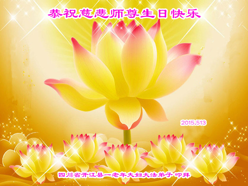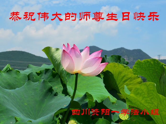 山东平原一大法弟子代表全家五口人,向慈悲伟大的师父问好!祝师父生日快乐!