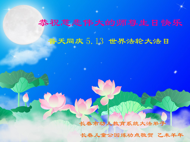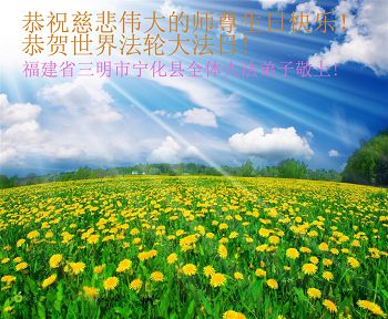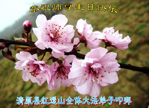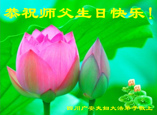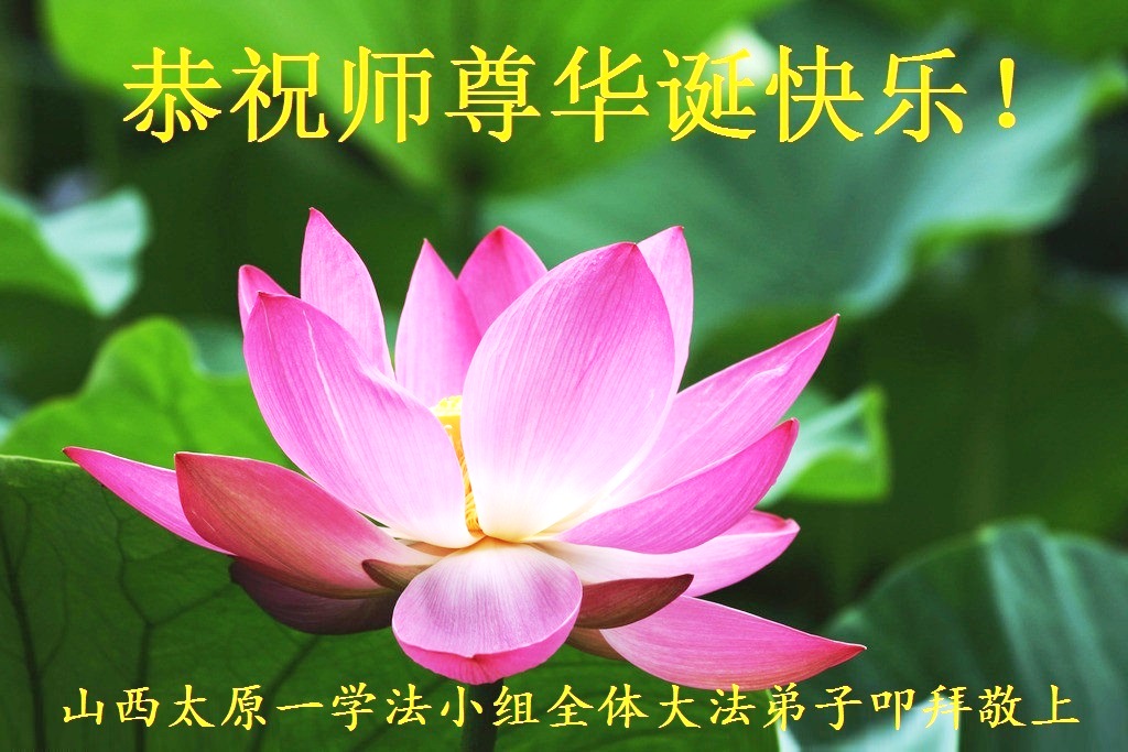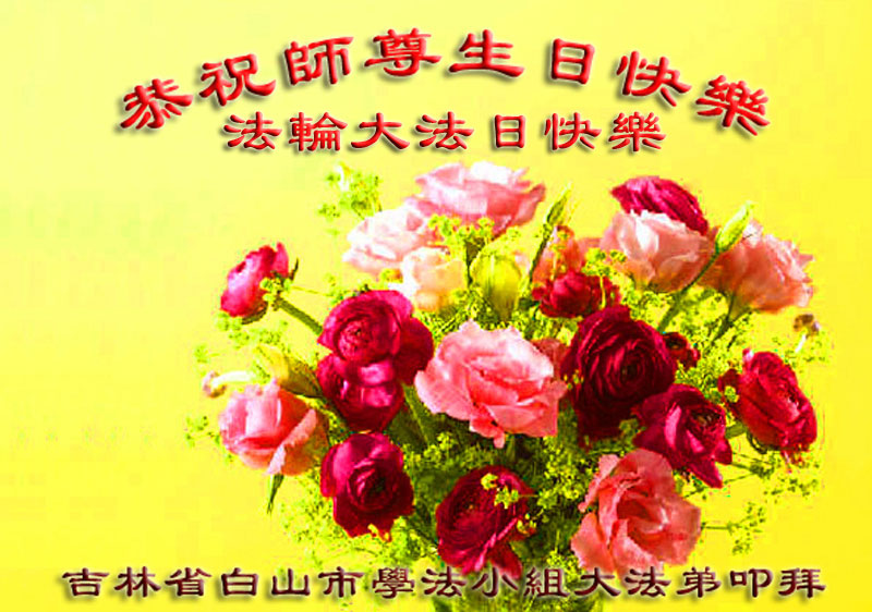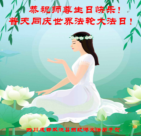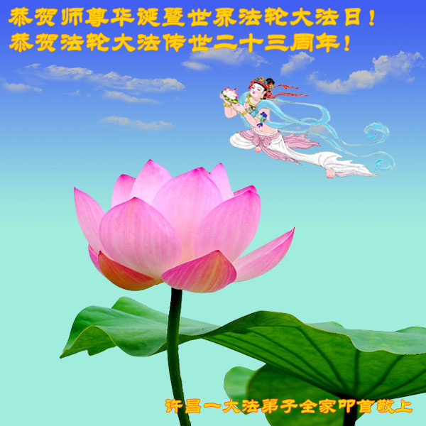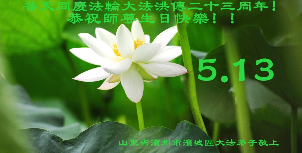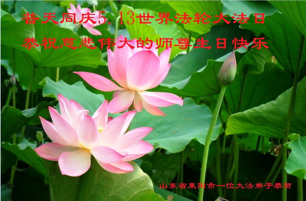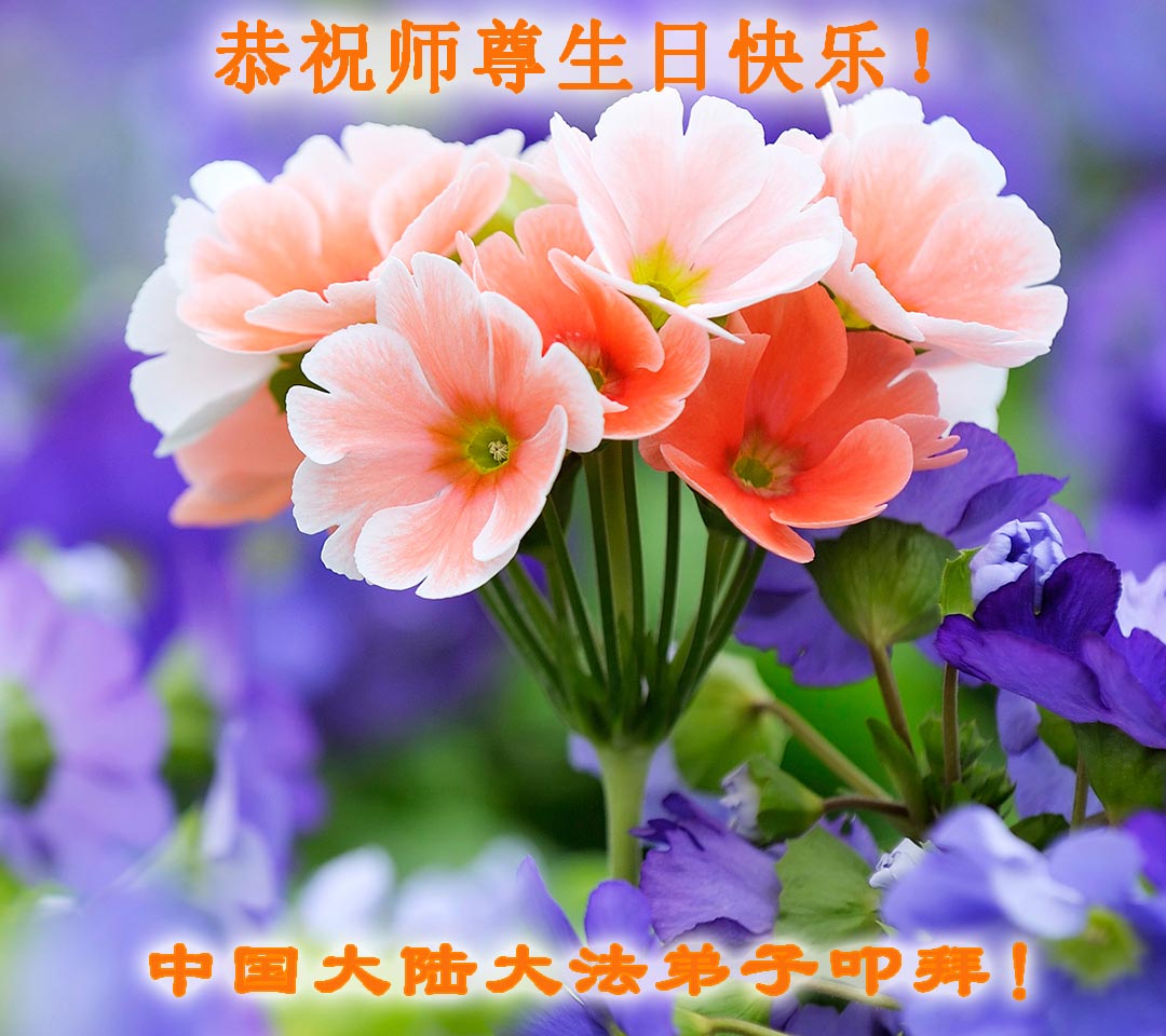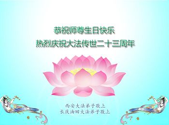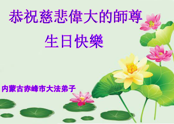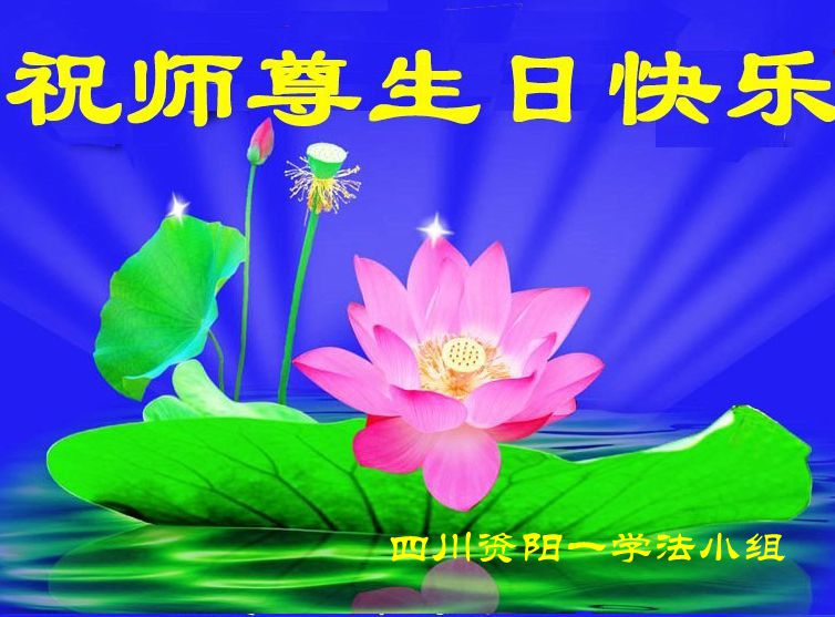 山东平原一大法弟子代表全家五口人,向慈悲伟大的师父问好!祝师父生日快乐!