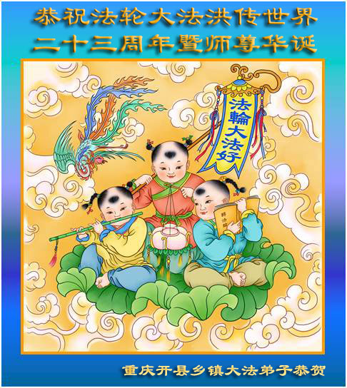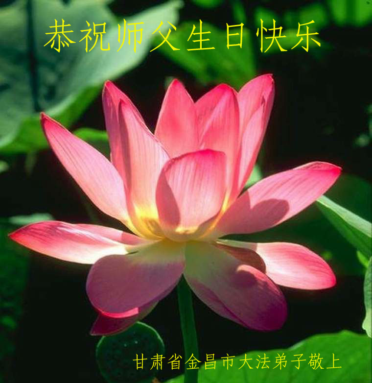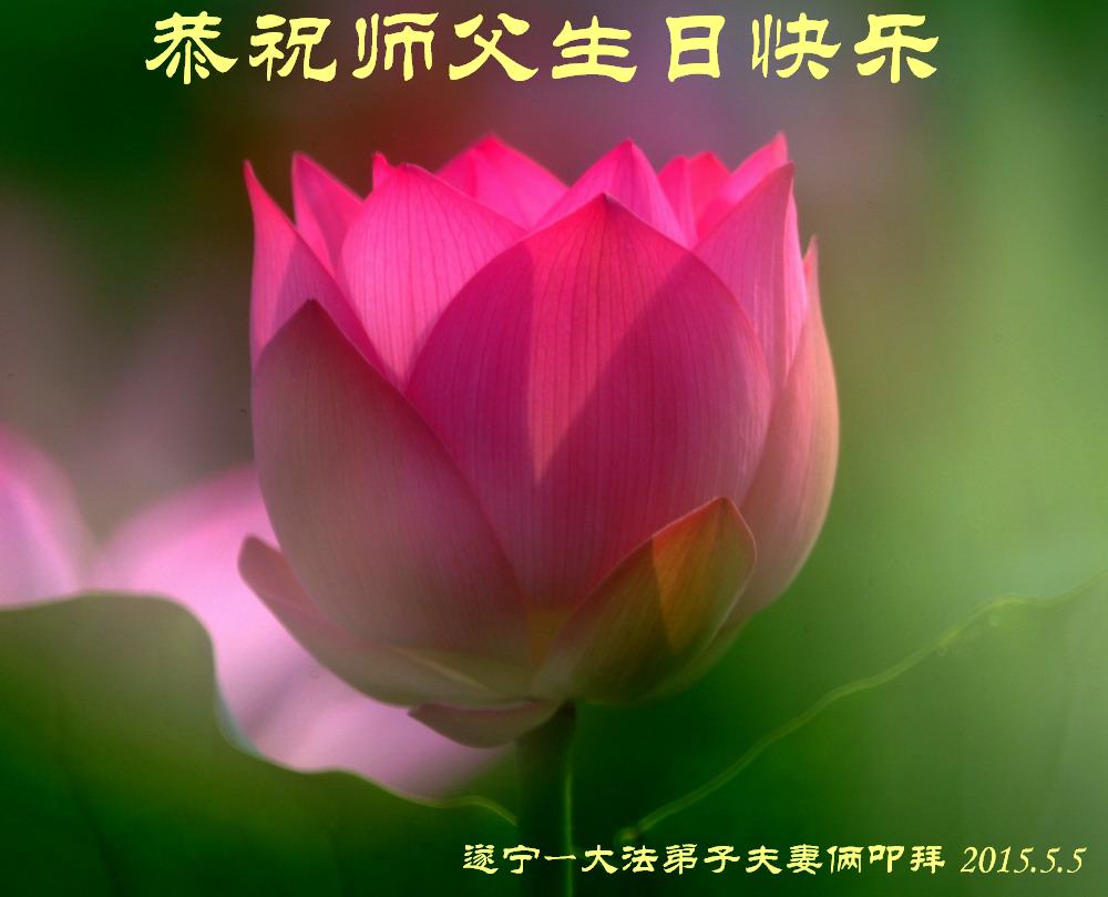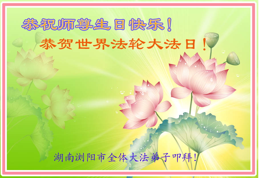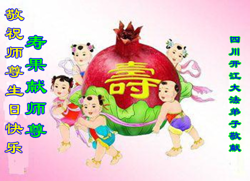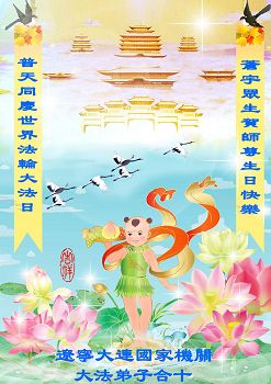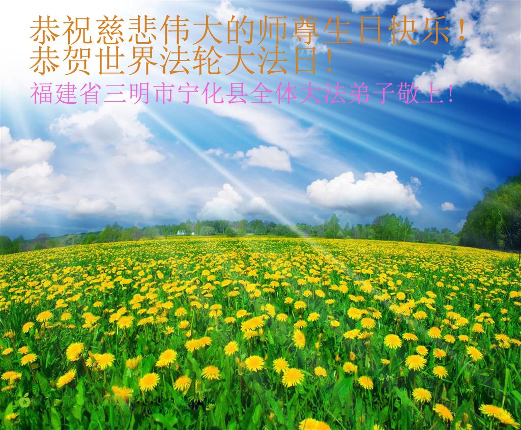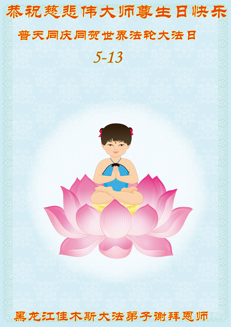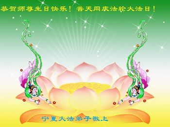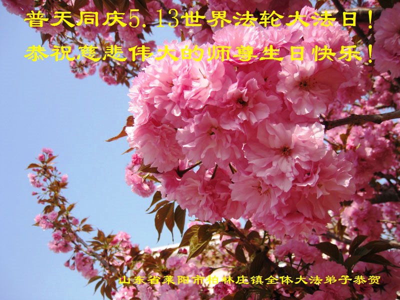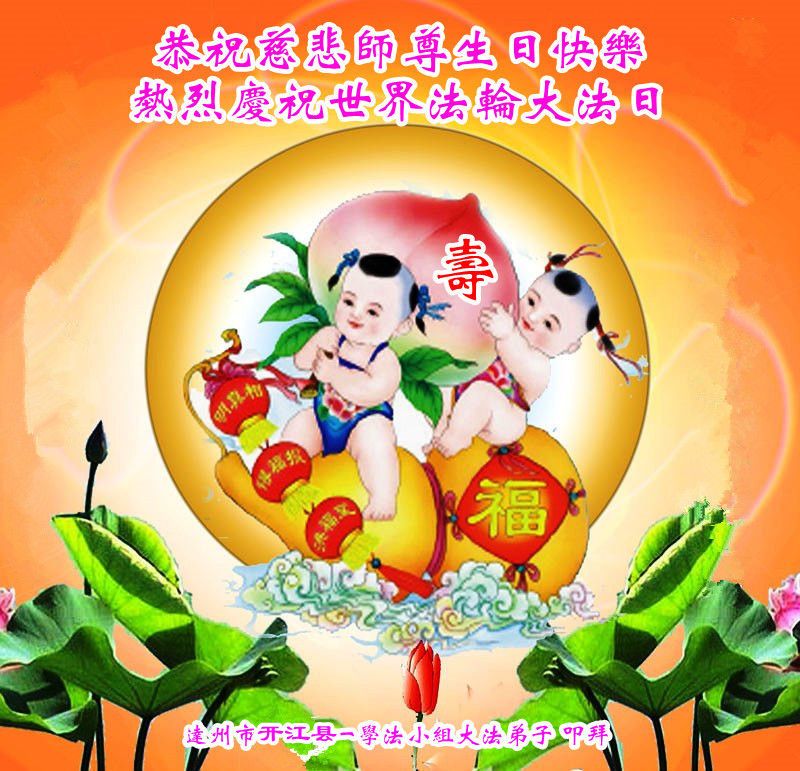 山东平原一大法弟子代表全家五口人,向慈悲伟大的师父问好!祝师父生日快乐!