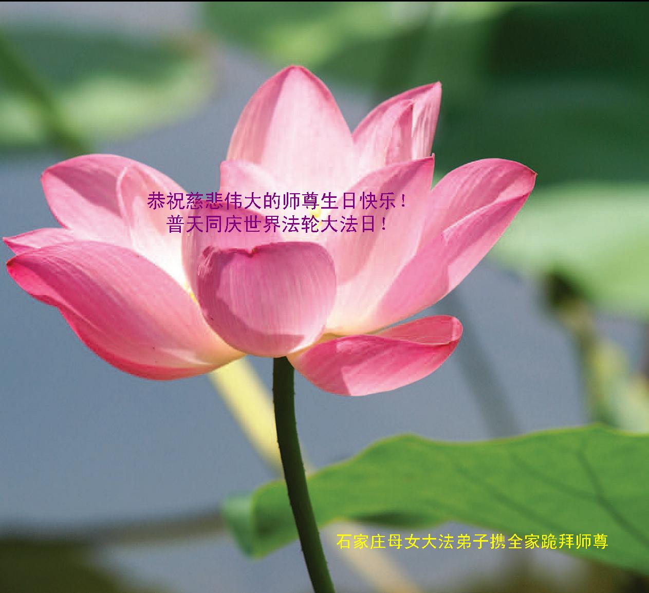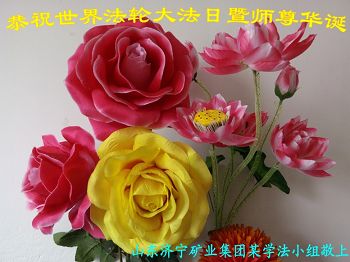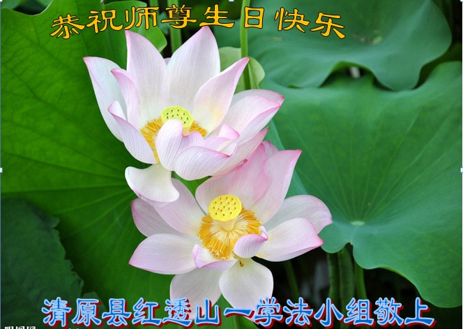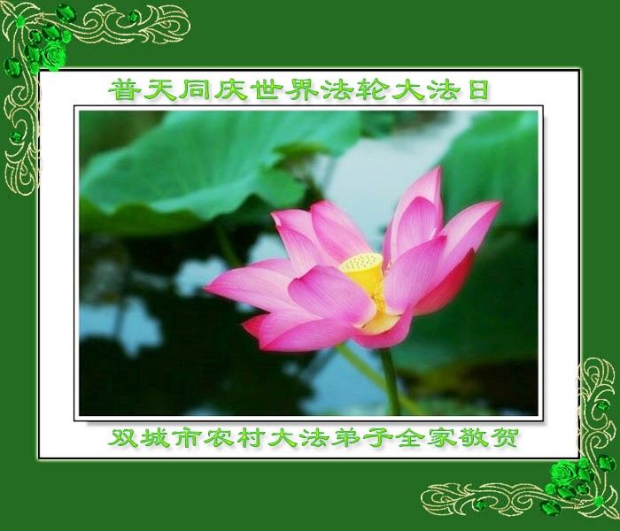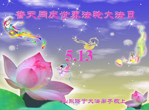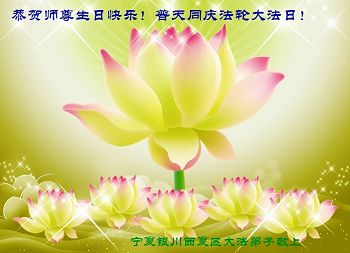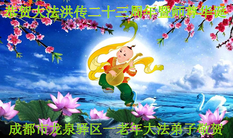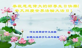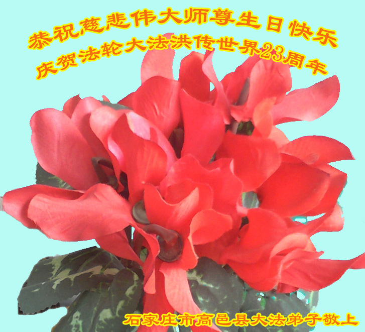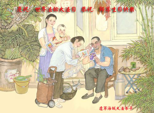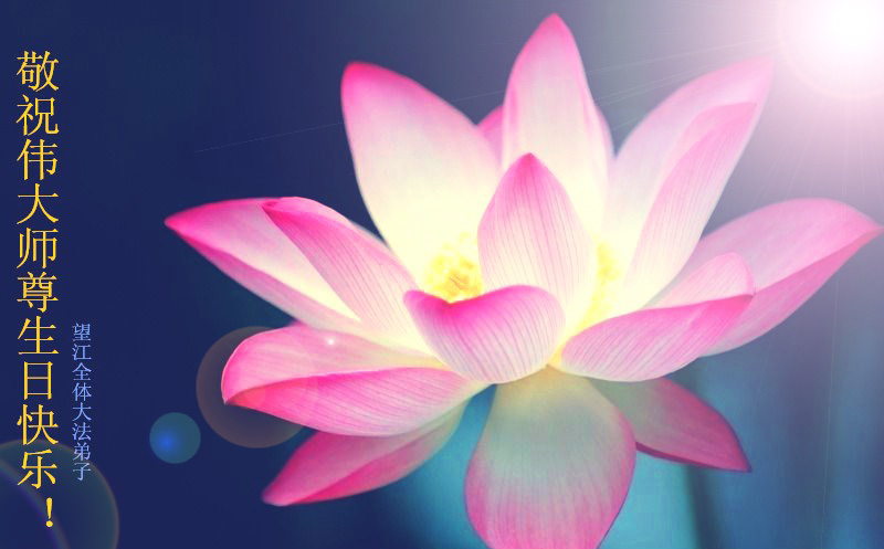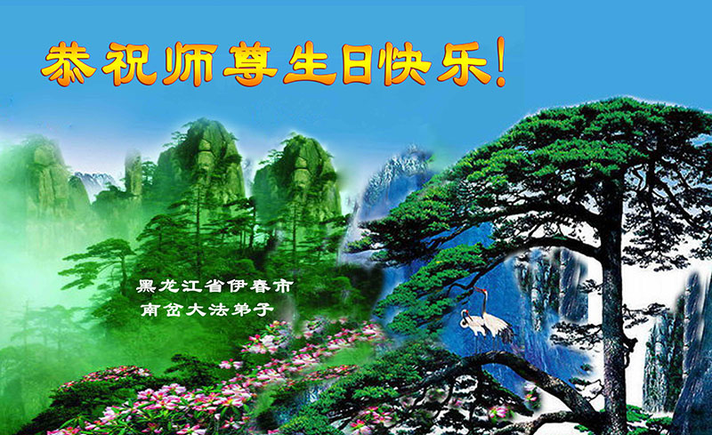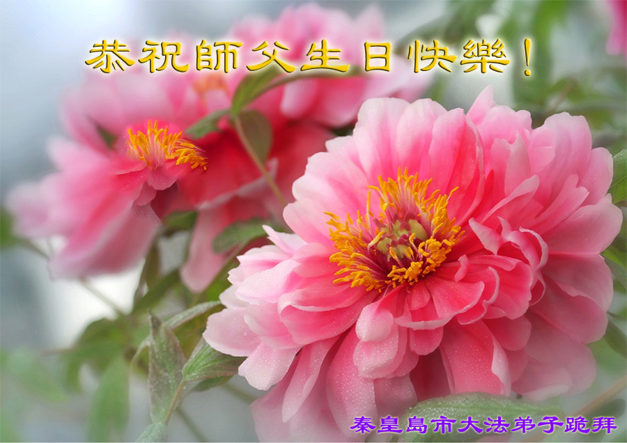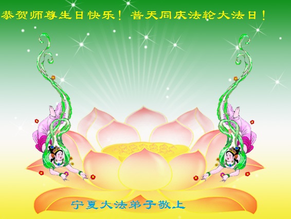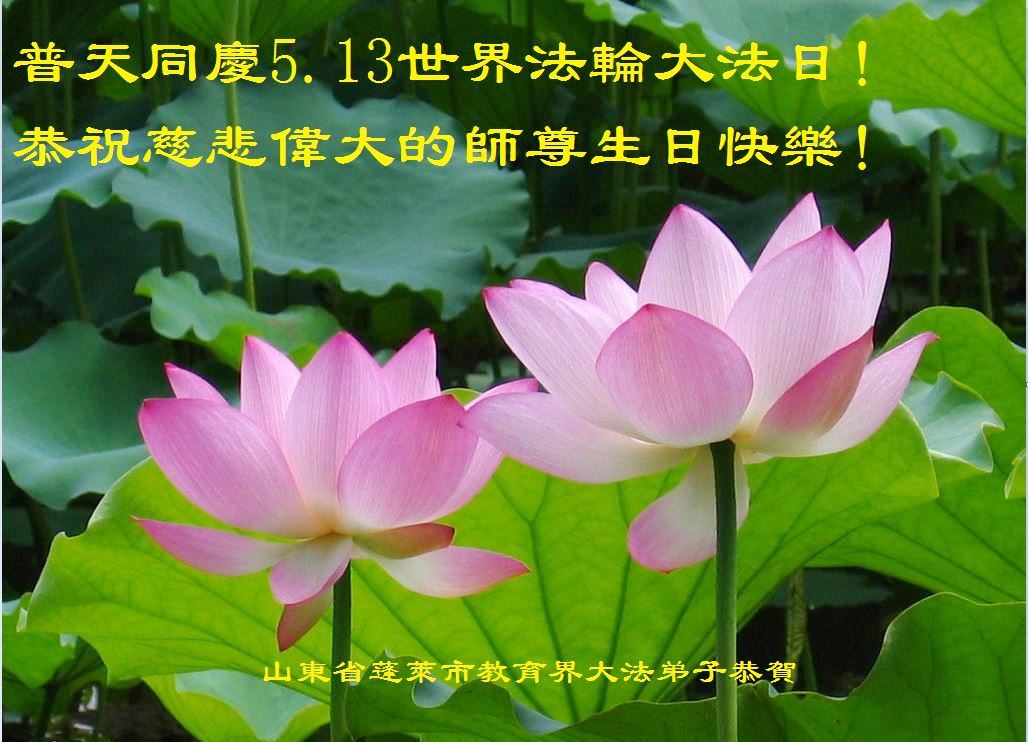 山东平原一大法弟子代表全家五口人,向慈悲伟大的师父问好!祝师父生日快乐!