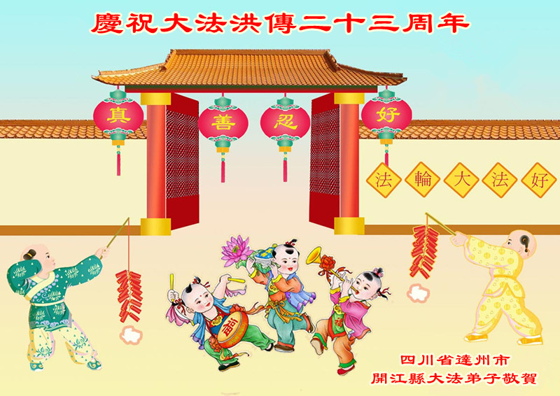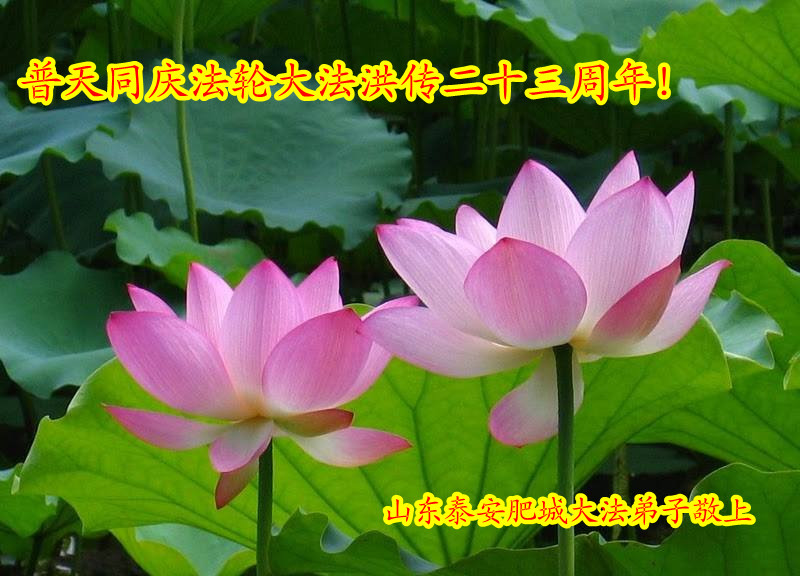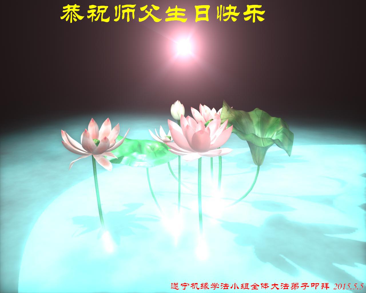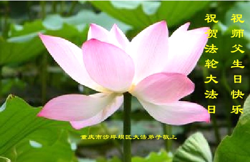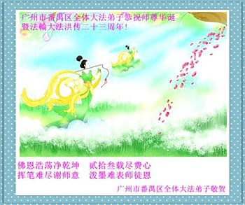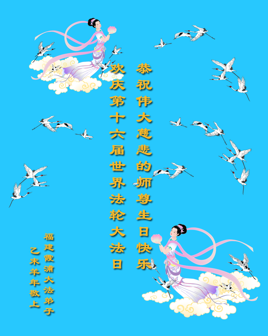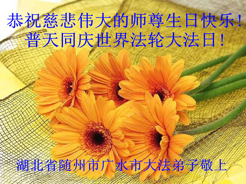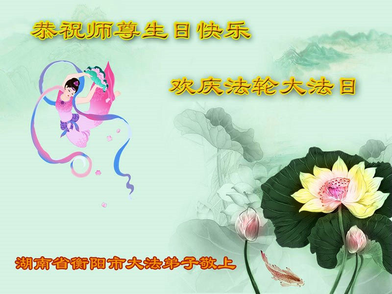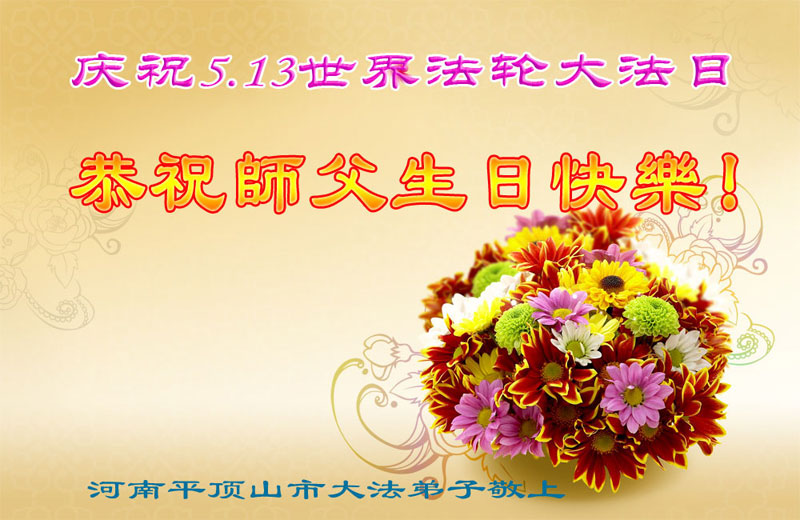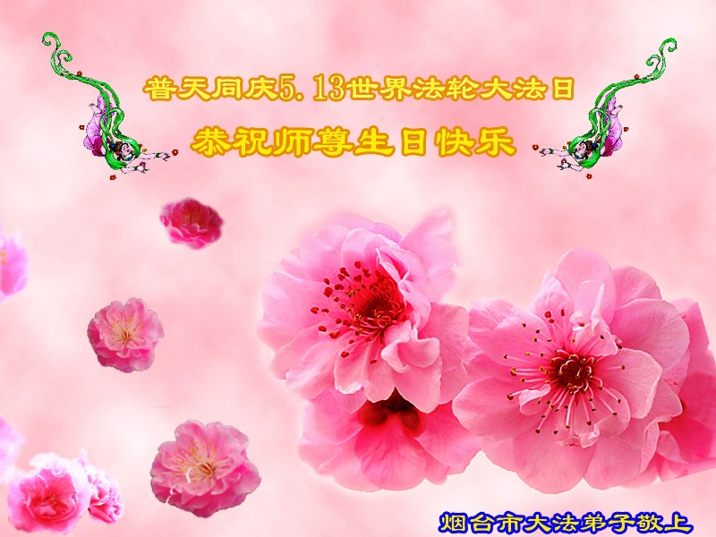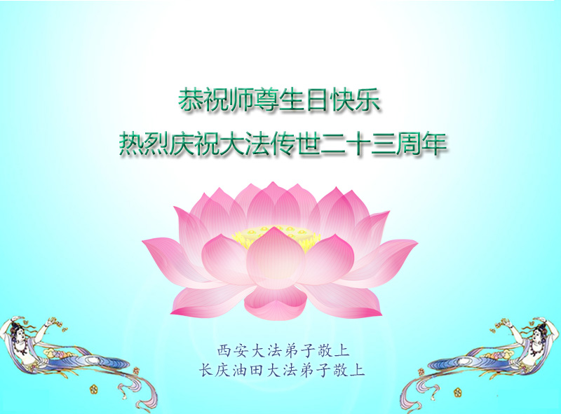 山东平原一大法弟子代表全家五口人,向慈悲伟大的师父问好!祝师父生日快乐!
