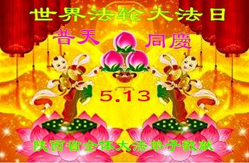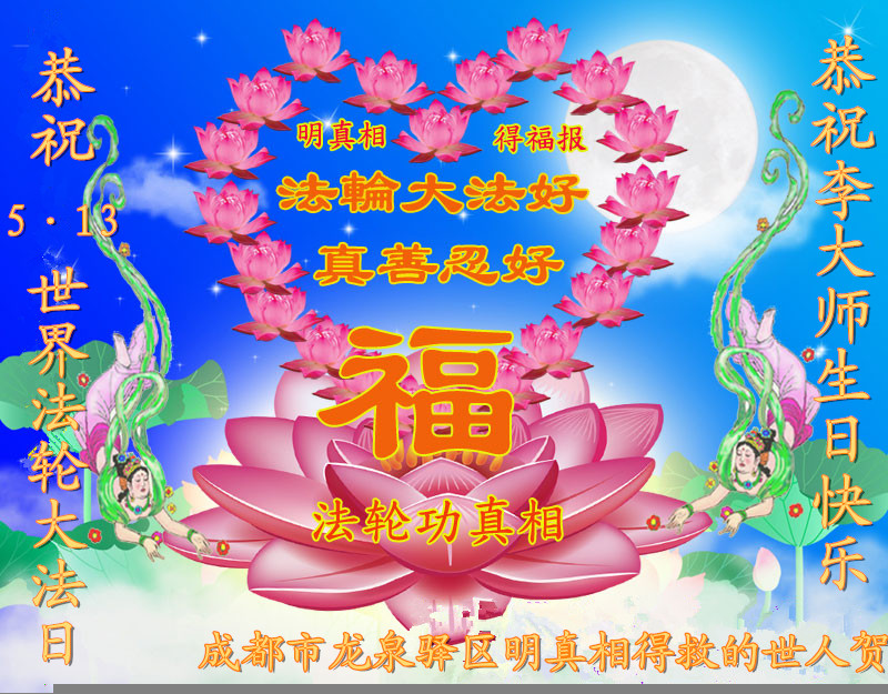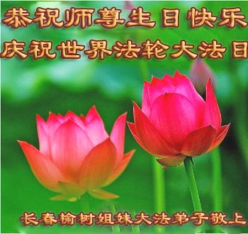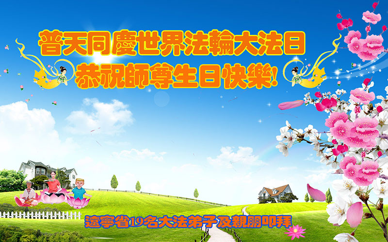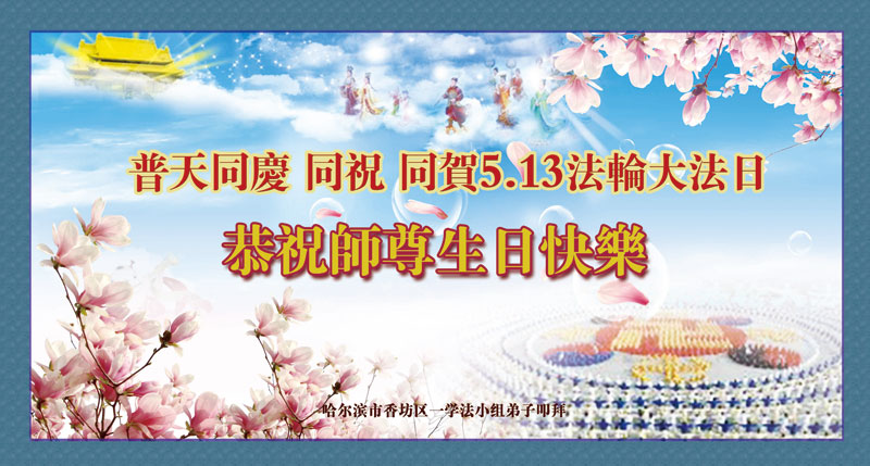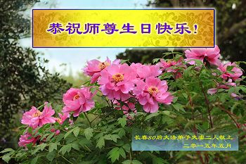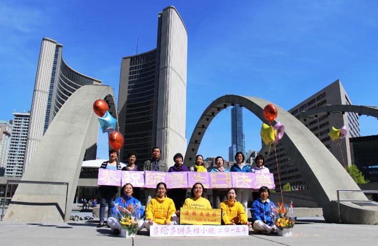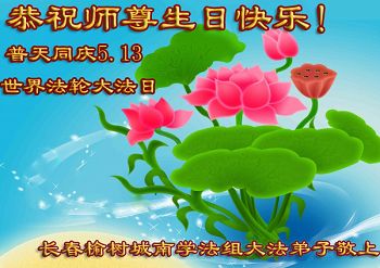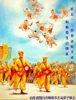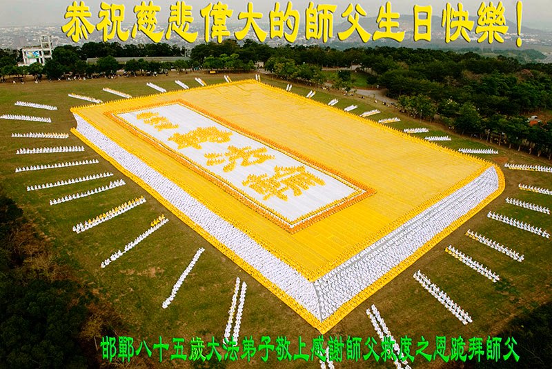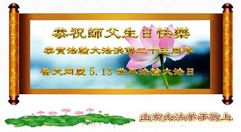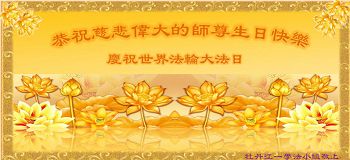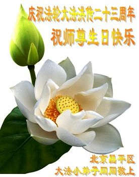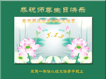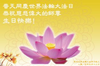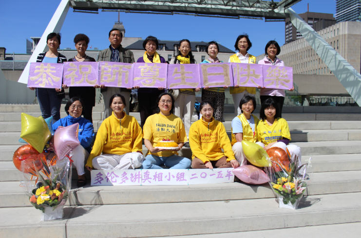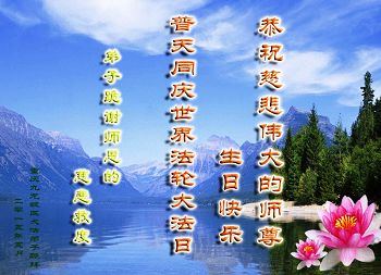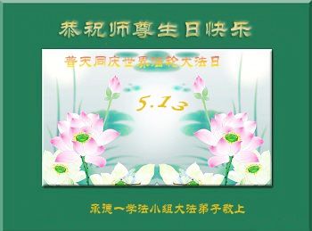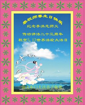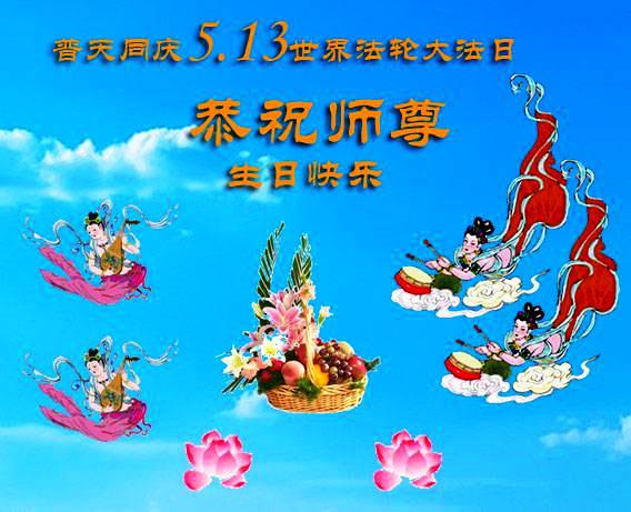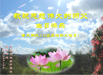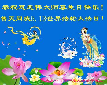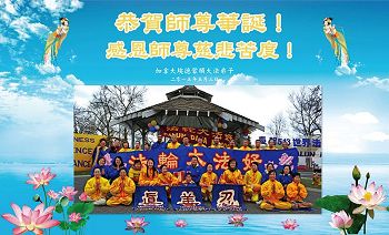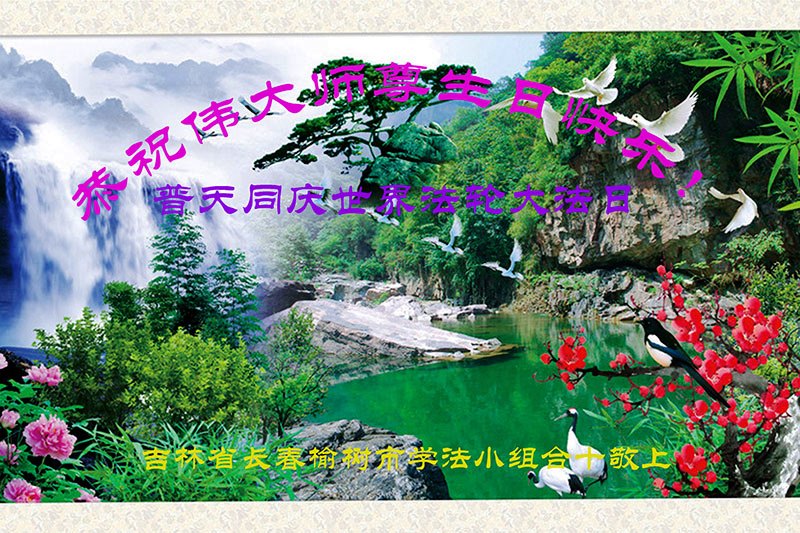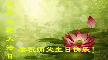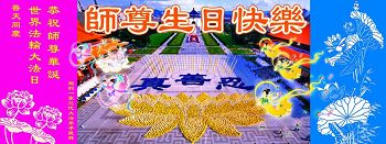 法轮功学员齐颂李洪志大师生日快乐