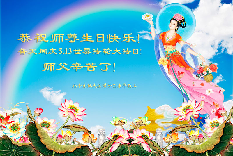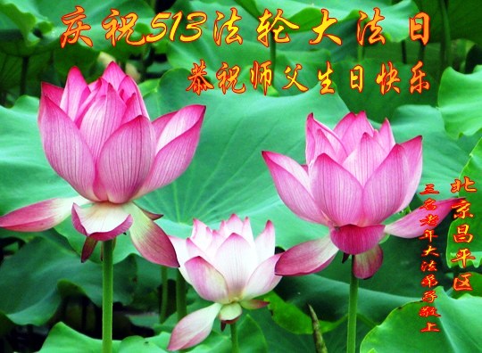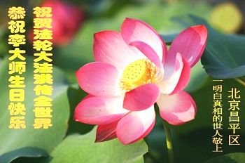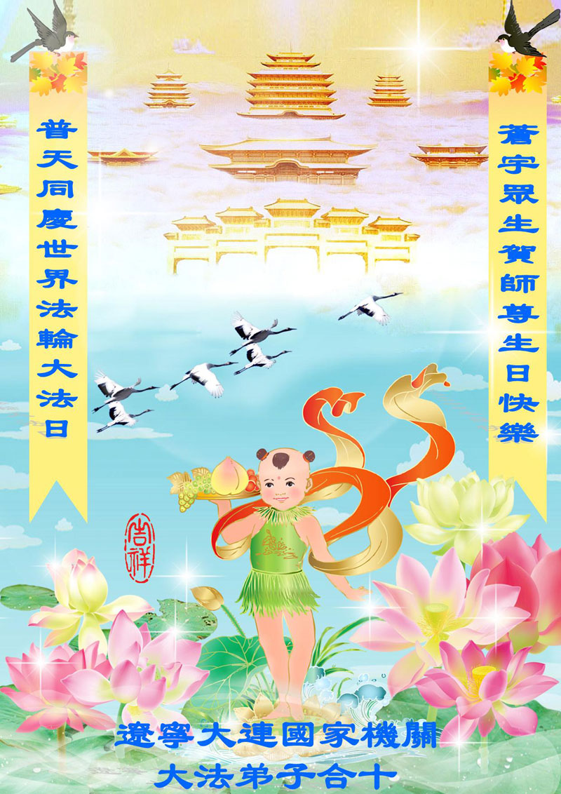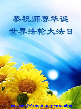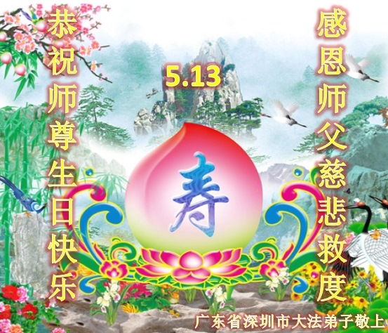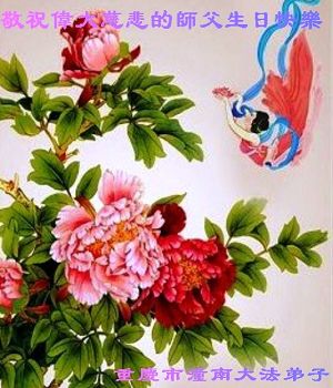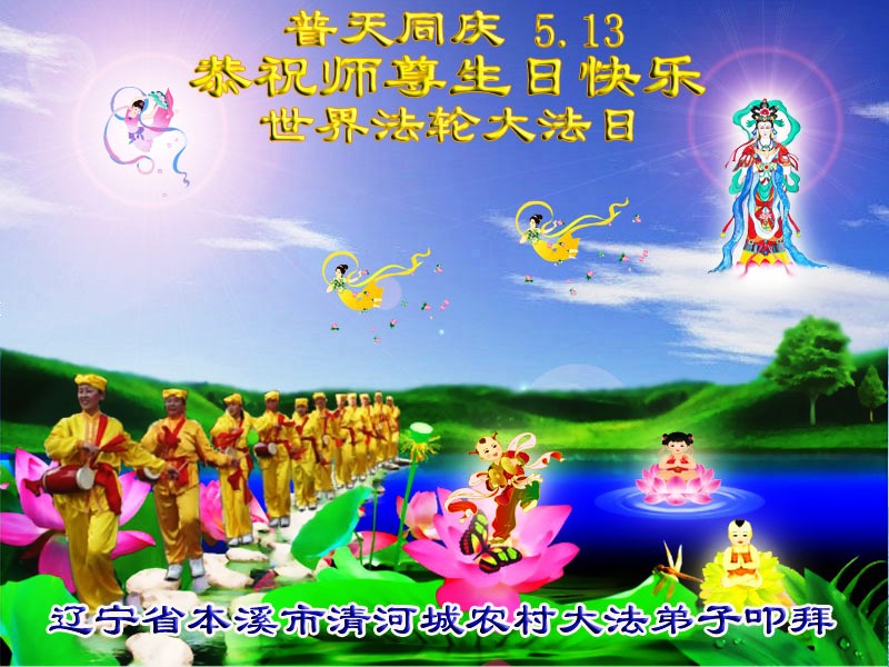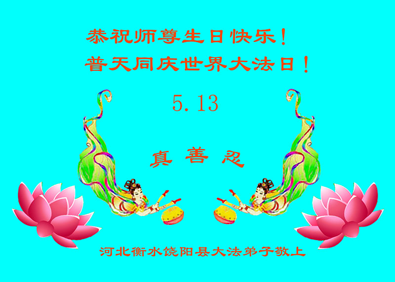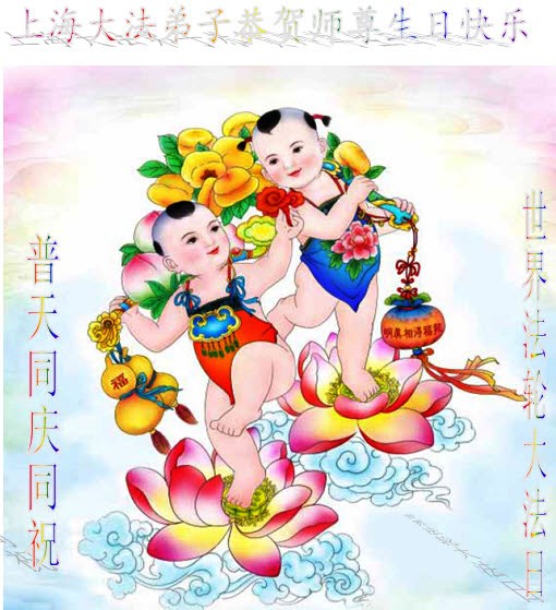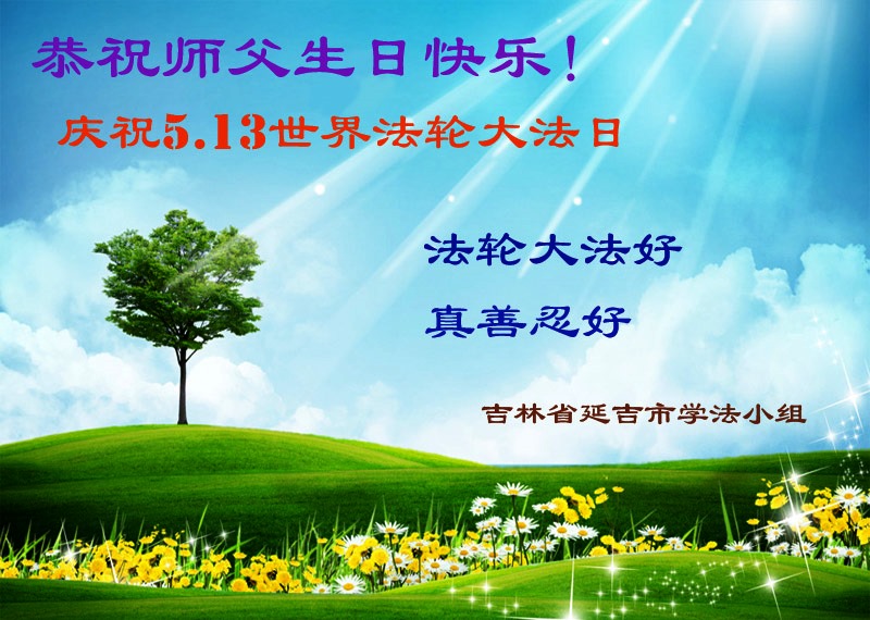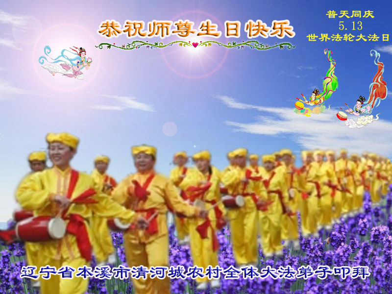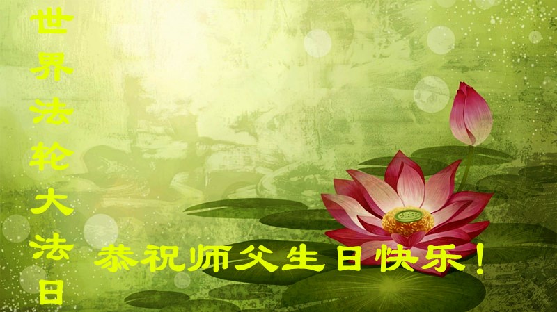 法轮功学员齐颂李洪志大师生日快乐