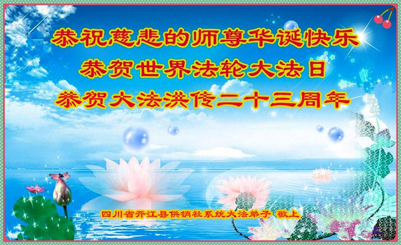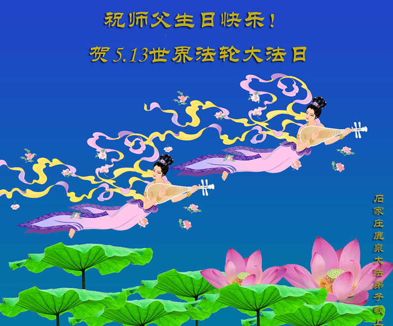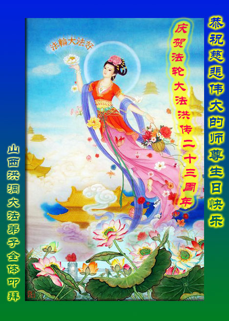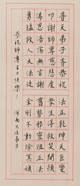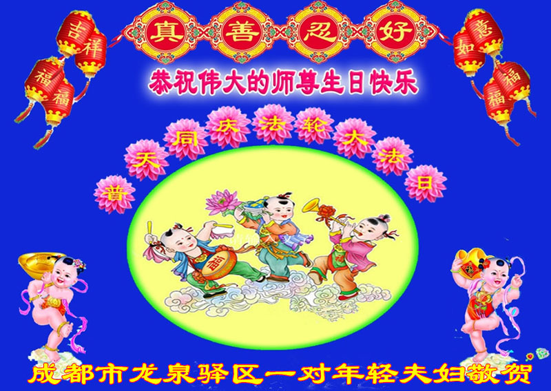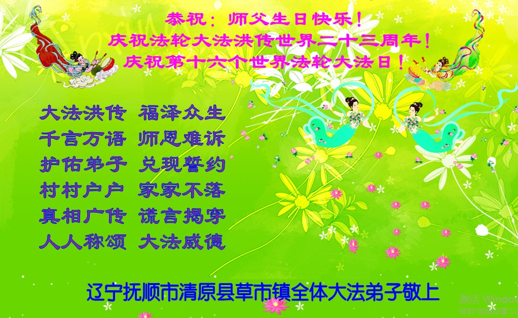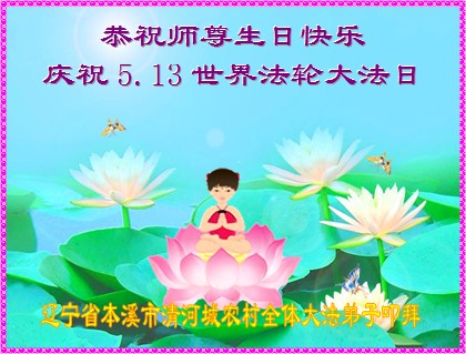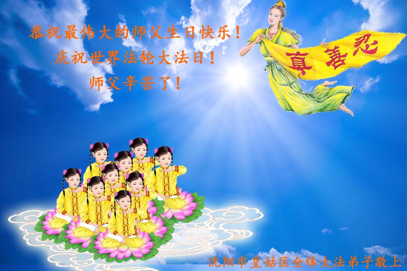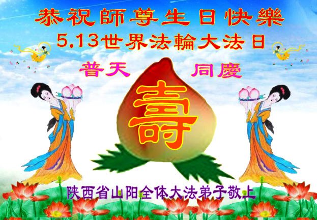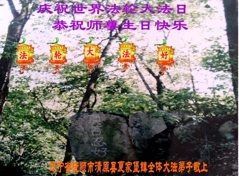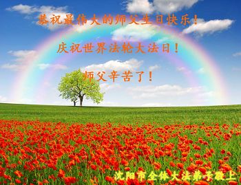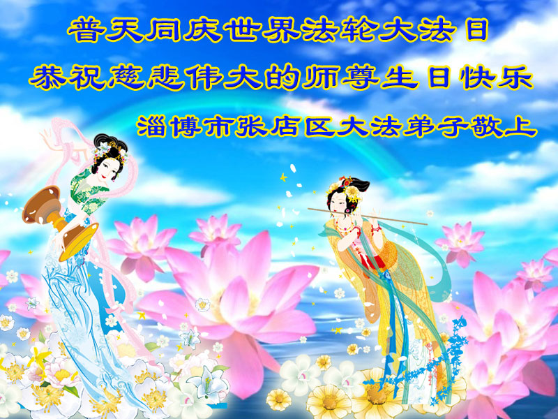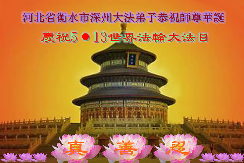 法轮功学员齐颂李洪志大师生日快乐