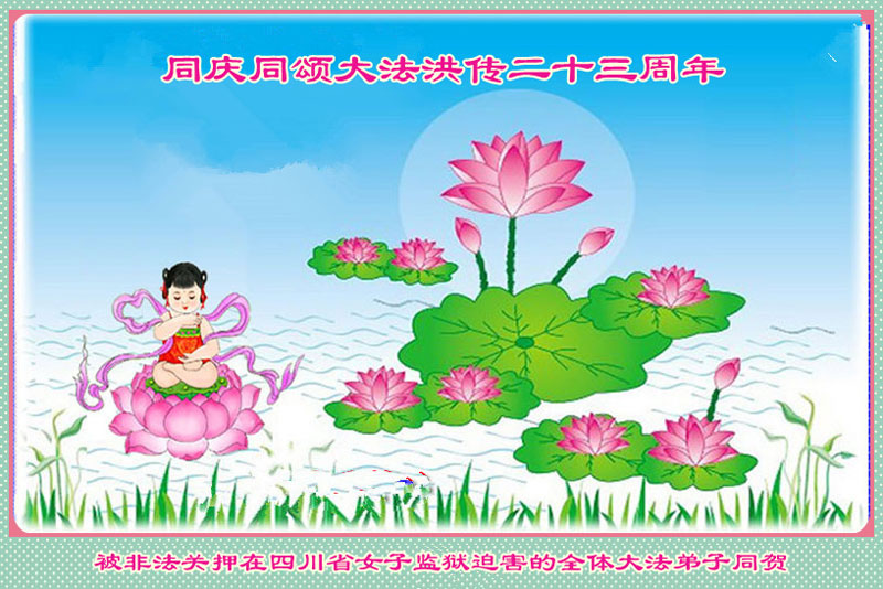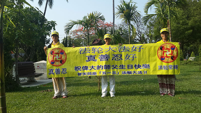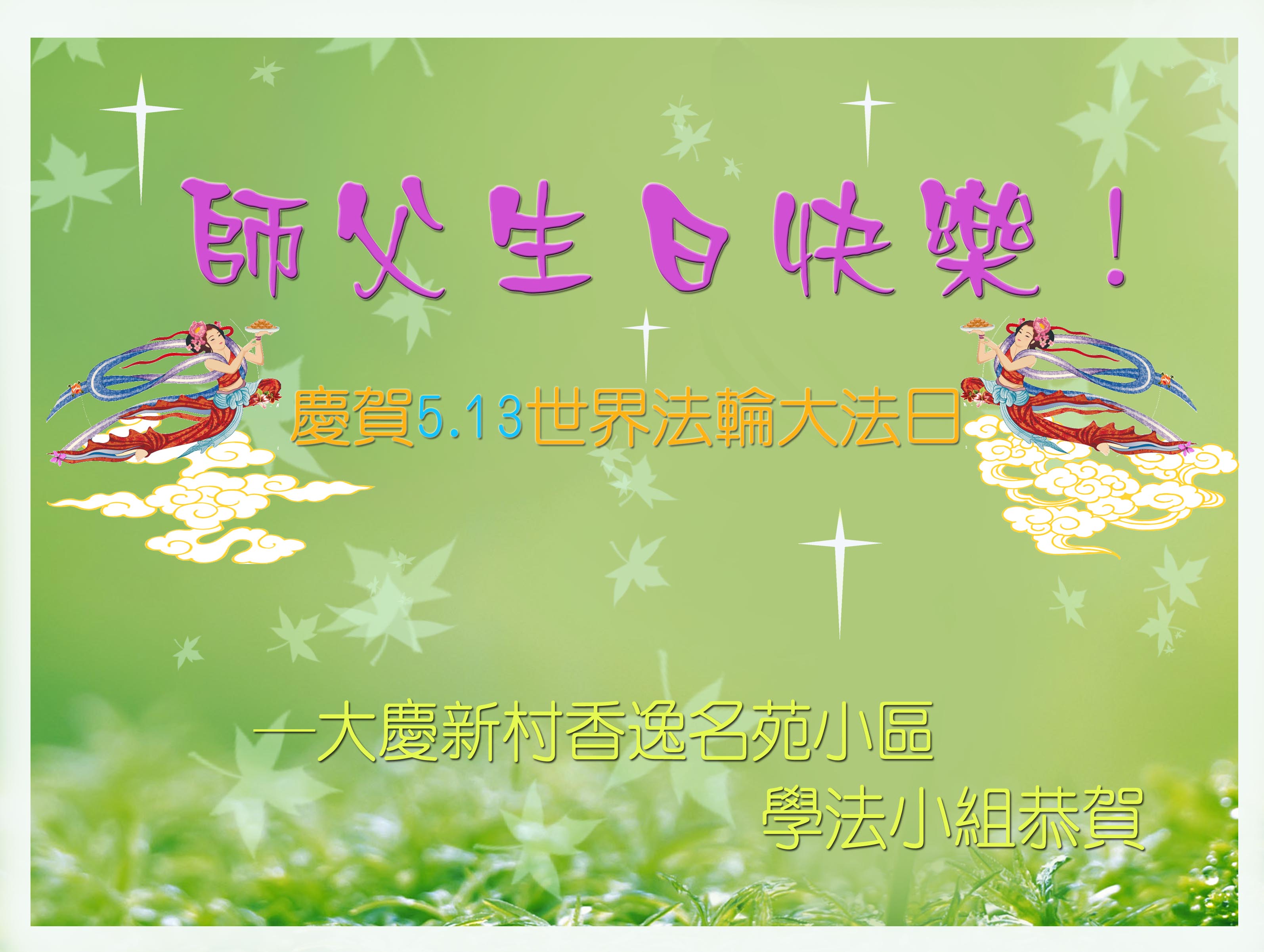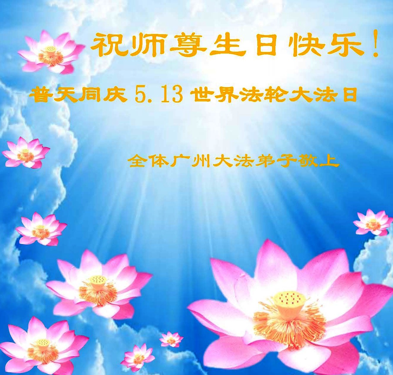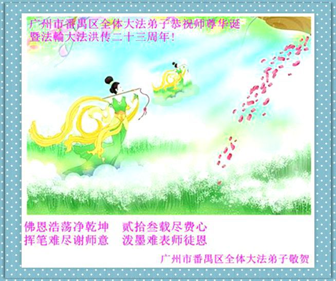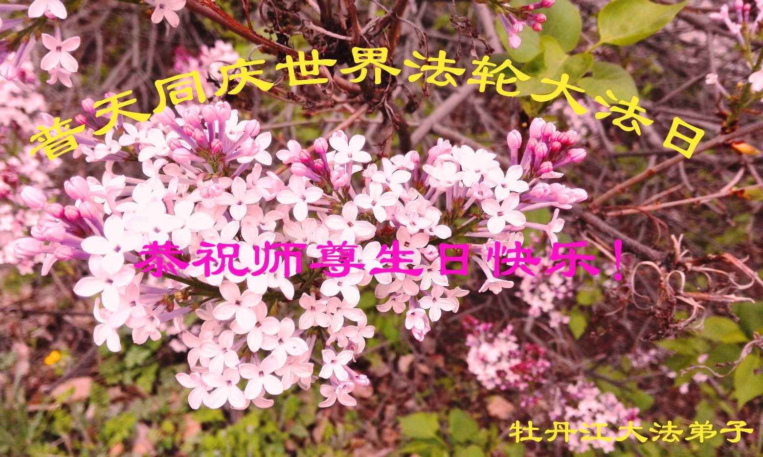 法轮功学员齐颂李洪志大师生日快乐