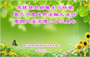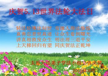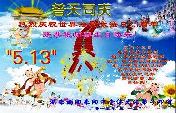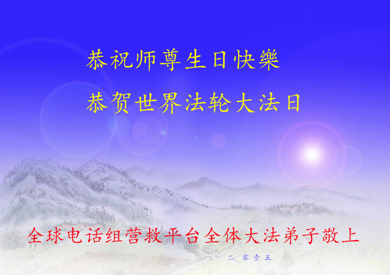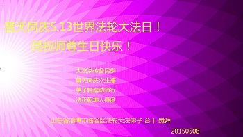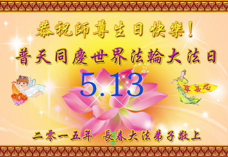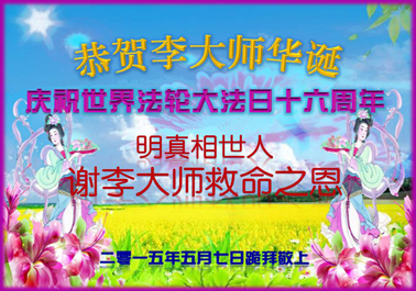 <英文版: http://en.minghui.org/html/articles/2015/5/16/150576.html>明真相世人恭贺世界法轮大法日暨师尊华诞(24条)