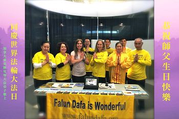 香港法轮功学员于五月十日举行炼功和游行等盛大庆祝活动。多位立法会议员祝贺法轮大法洪传世界,赞佩法轮功学员真、善、忍的精神是世人的榜样。下午的游行更让沿途不少大陆游客感到非常震撼。
