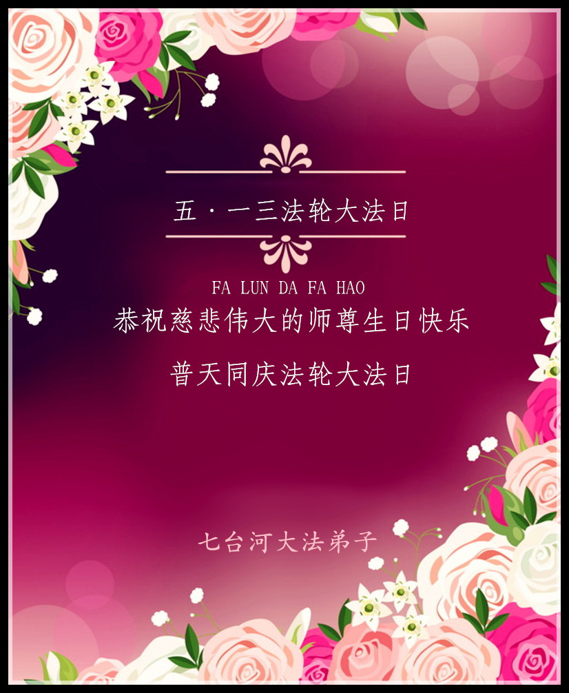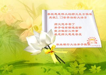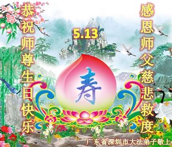 我从心底真心感谢李大师的救命之恩!在李大师华诞之际我代表所有大法弟子的家属和明真相的世人祝李大师生日快乐!也同时恭祝五一三世界法轮大法日!再次跪拜谢救命之恩!