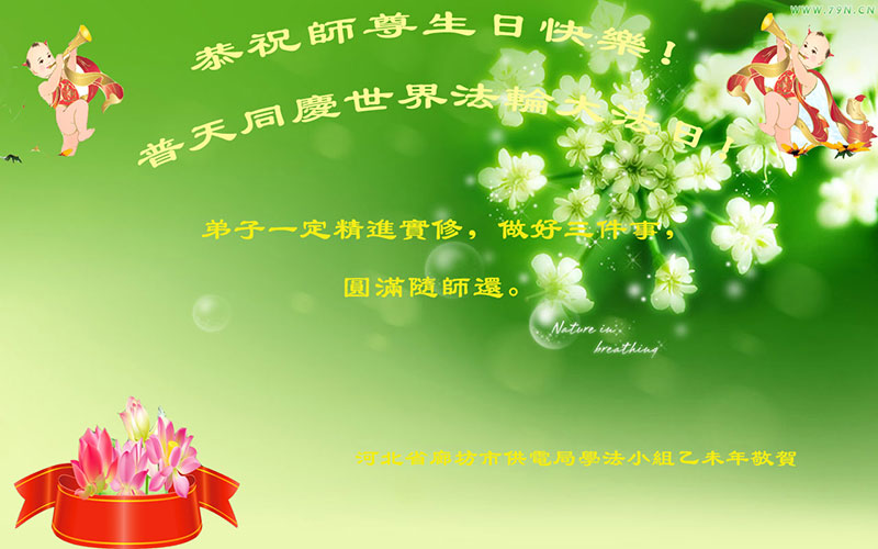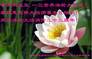 山东德州平原一大法弟子及全家十口人敬祝师父生日快乐!