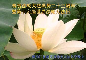 时值第十六届世界法轮大法日来临之际,明真相的内蒙古多伦县四位世人自此感谢李老师的谆谆教导,让我们这些人在道德一日千里下滑、人心败坏、诚信不存的环境中,知道了道德才是做好人的目标,“真、善、忍是衡量好坏人的标准”。启迪了我们的良知。明辨了是非,在此感谢李老师。祝李老师身体健康,万事如意!