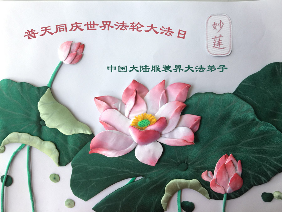 作品由莲花和莲花座两部分组成,由莲花、花蕾和花叶组成的莲花高约三十公分,莲花有十七个花瓣,直径为二十五公分,花蕊中镶嵌八颗红钻石,莲花座内径三十二公分、高十二公分,由五层粉色花瓣,每层十三个花瓣围合而成。莲花座上面镶有“真善忍”和庆祝第十五届“世界法轮大法日”的金字,并镶嵌了四百颗钻石,呈放射状。