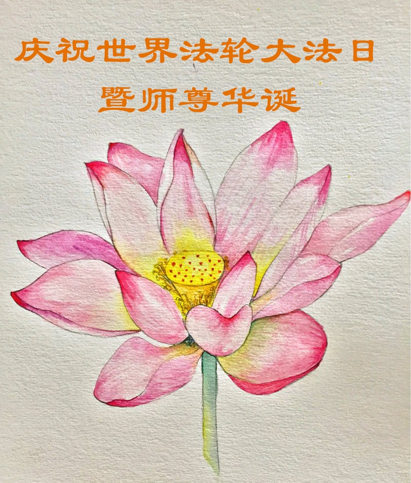 一位明白真相的世人净笔恭祝李老师生日快乐!并献上自己的手绘莲花画。