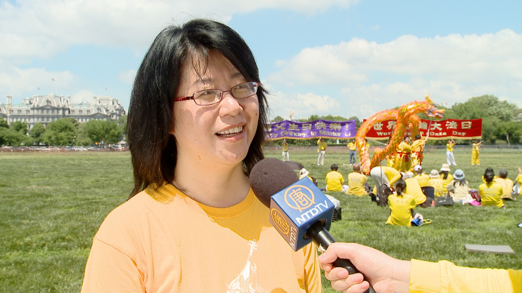 【明慧网二零一五年五月十三日】二零一五年五月九日,美国大华府地区部份法轮功学员聚集到白宫南面的大草坪,庆祝五月十三日第十六届“世界法轮大法日”及法轮大法弘传二十三周年,同时恭祝法轮大法创始人李洪志先生六十四岁华诞。