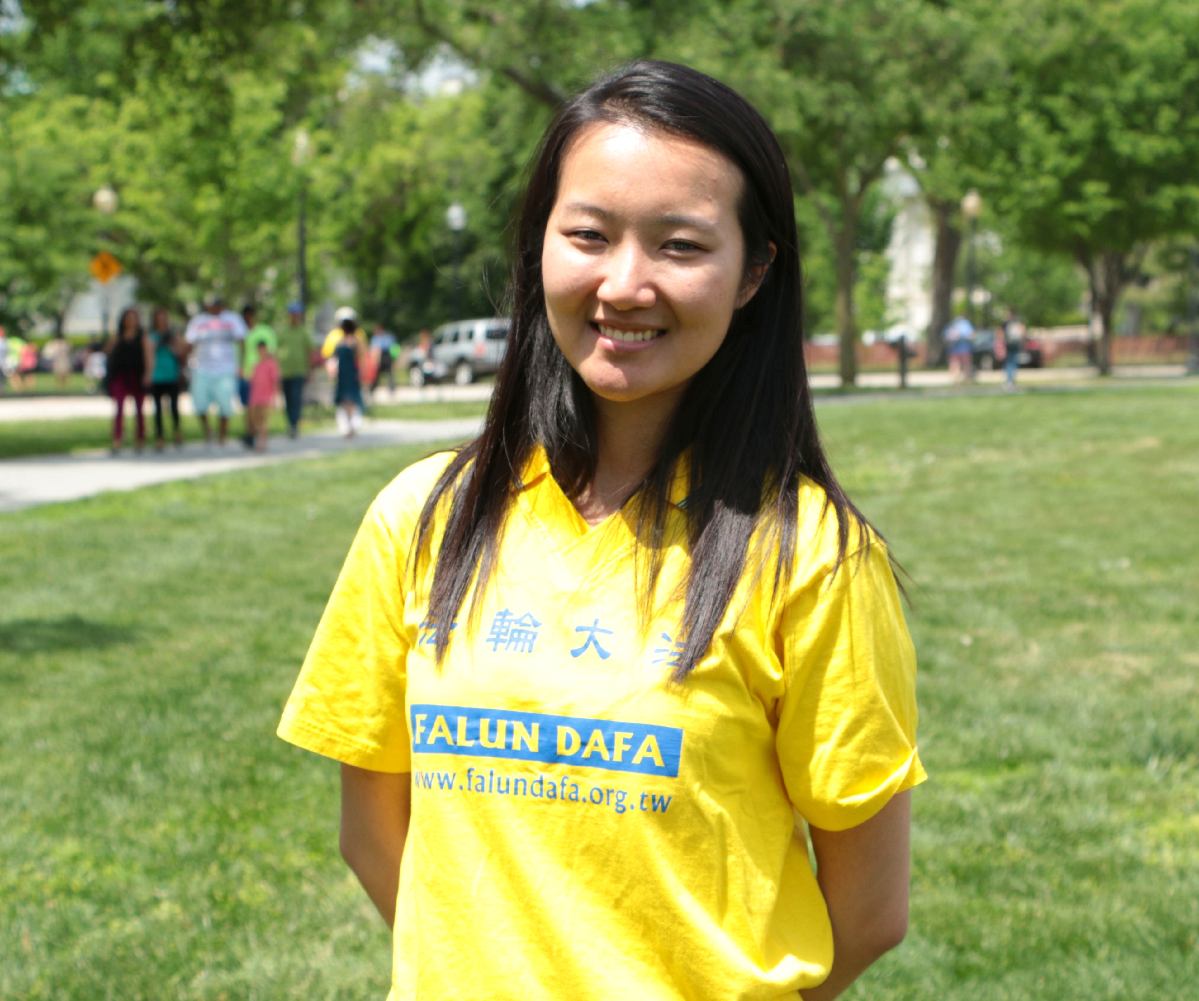 九岁从中国大陆随家人移民来美的二十二岁女孩Jenny Tang刚从学校毕业不久,目前在一个信息技术公司做财务工作。她表示,虽然自己是从小随父母一起学炼法轮功,但真正发自内心想要修炼是在来到美国后,“我看到有这么多人,不管是白人、黑人、黄种人都修炼法轮功,我觉得真的很好。而且我看到那些修炼法轮功的小朋友都比我更成熟、也都特别善良。”