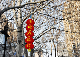 武汉街道和小区附近的真相条幅展示大法好