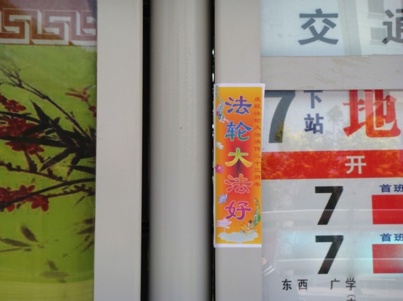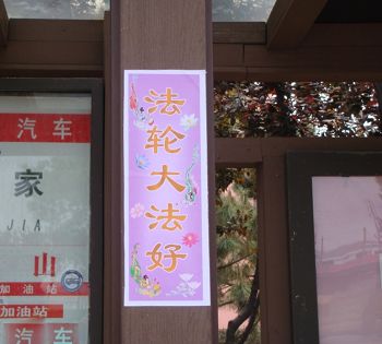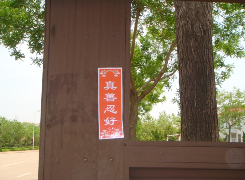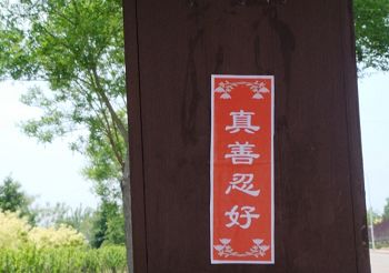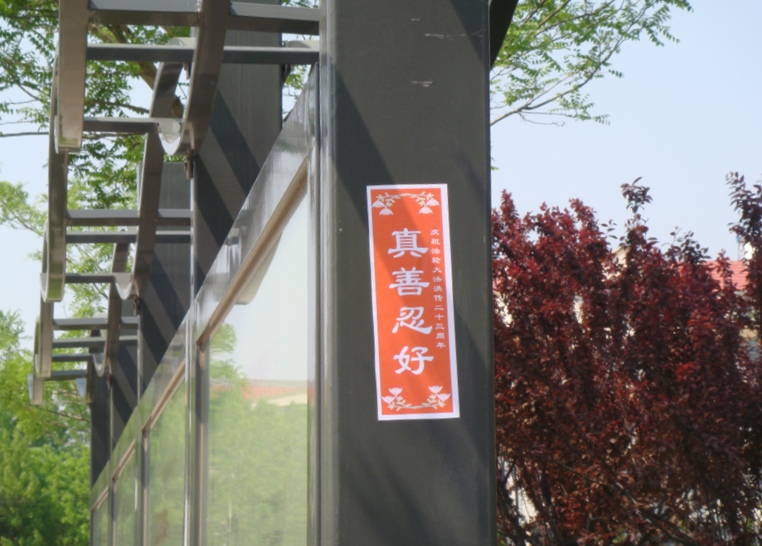 说明:梅花、福字是镂空雕刻的。“法轮大法好”是刻上的,刻上后,再用笔描了一下。