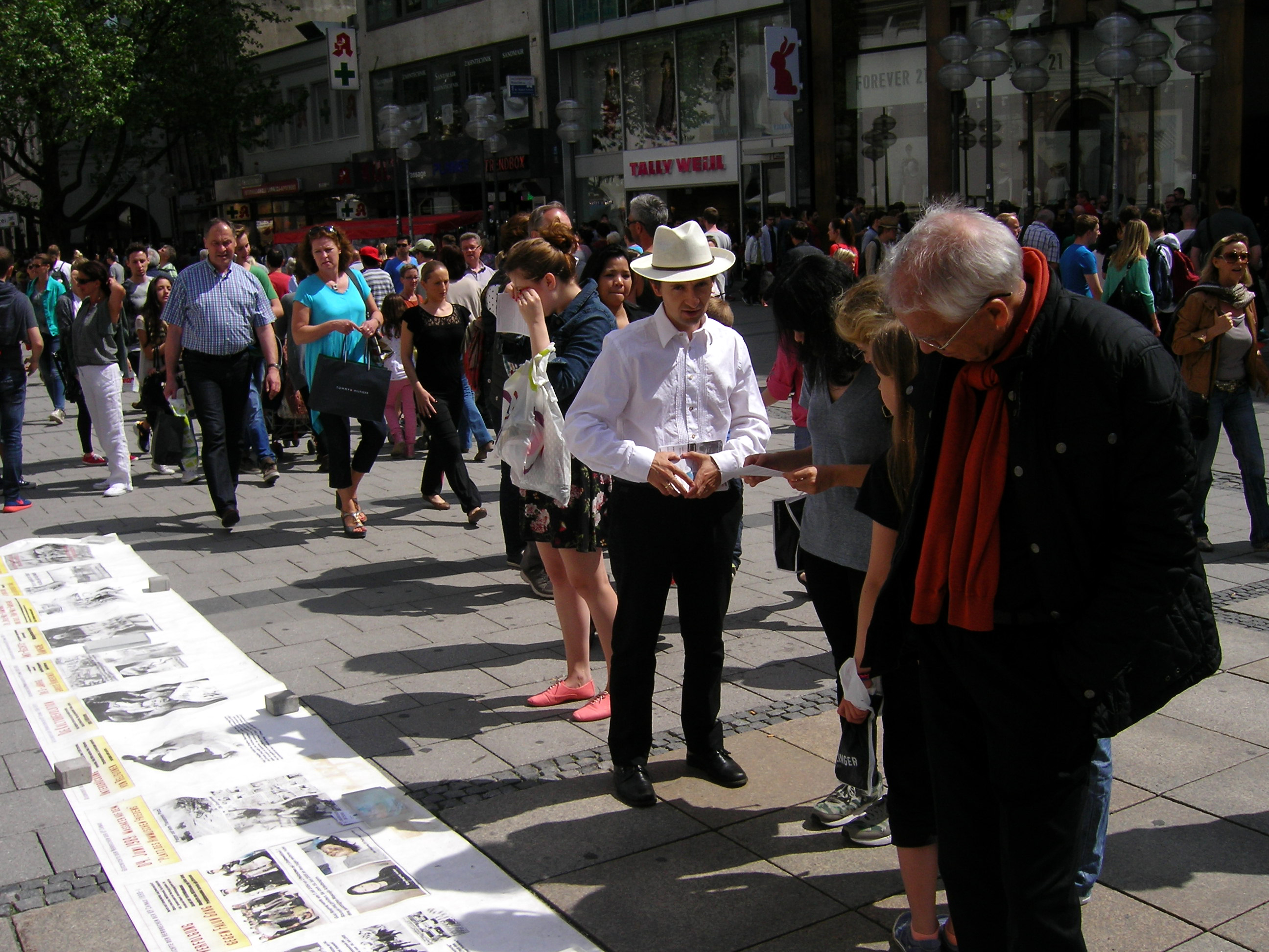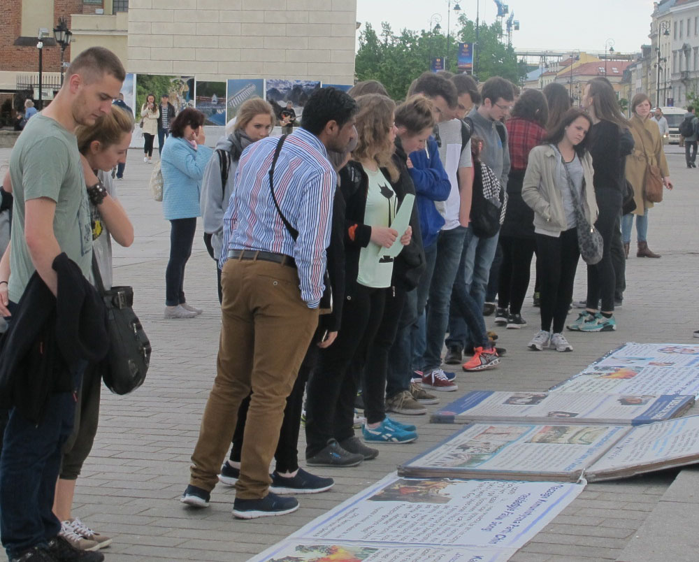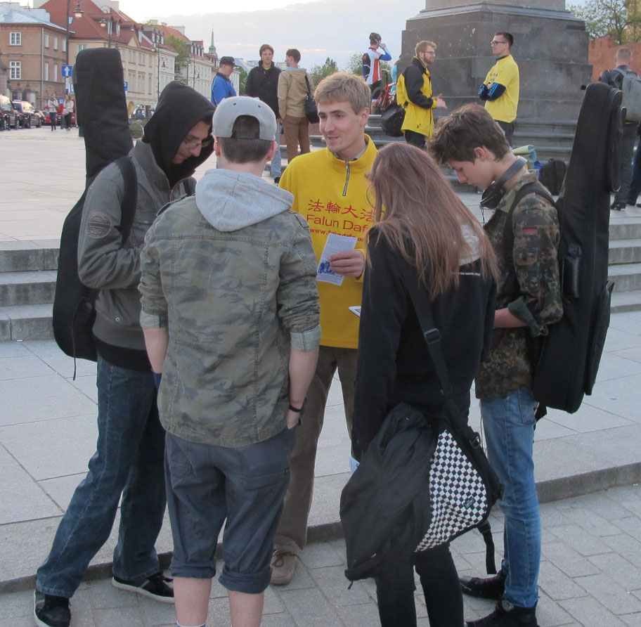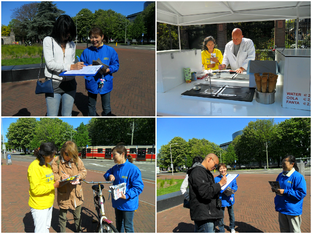 他说:“我国内的表妹一直在炼法轮功,她是一名小学老师,炼功前很多病,炼功后全好了。打压后她还坚持炼和教别人,最后就受迫害进了劳教所。我看着她的坚持很受触动,加上几次出国我看到海外的自由情况,我也就萌发了要学法轮功的想法,今天就买了书,我现在想知道哪里可以上‘九天班’。”
